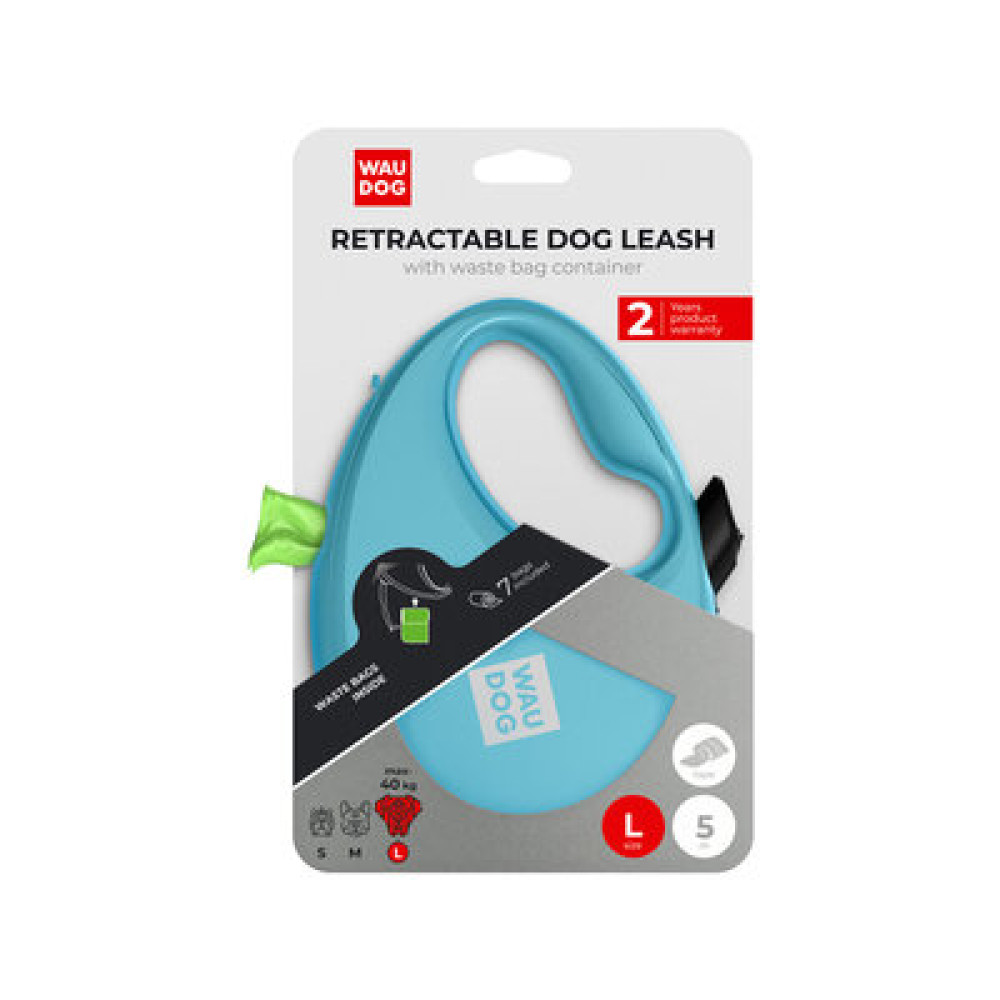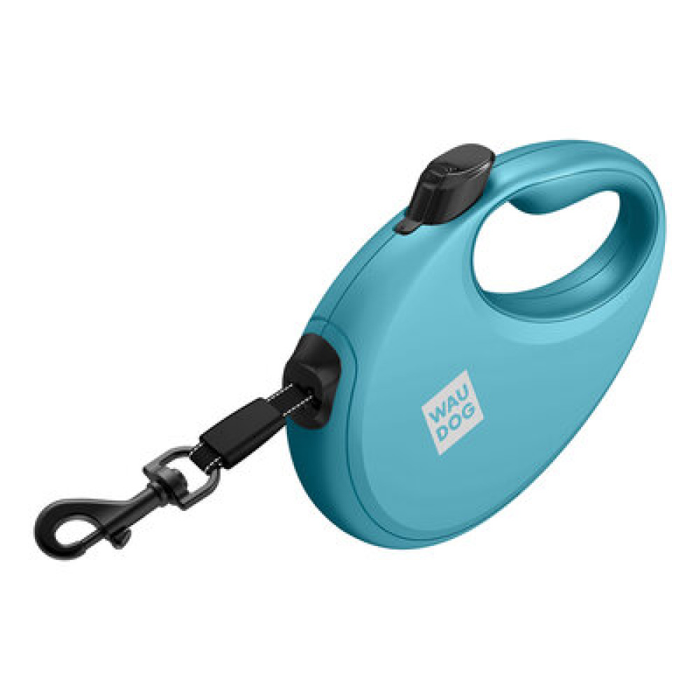 WAUDOG R-leash — удобная рулетка на каждый день. Регулируйте длину одним нажатием, храните пакеты во встроенном контейнере, оставайтесь заметными благодаря светоотражающей ленте.