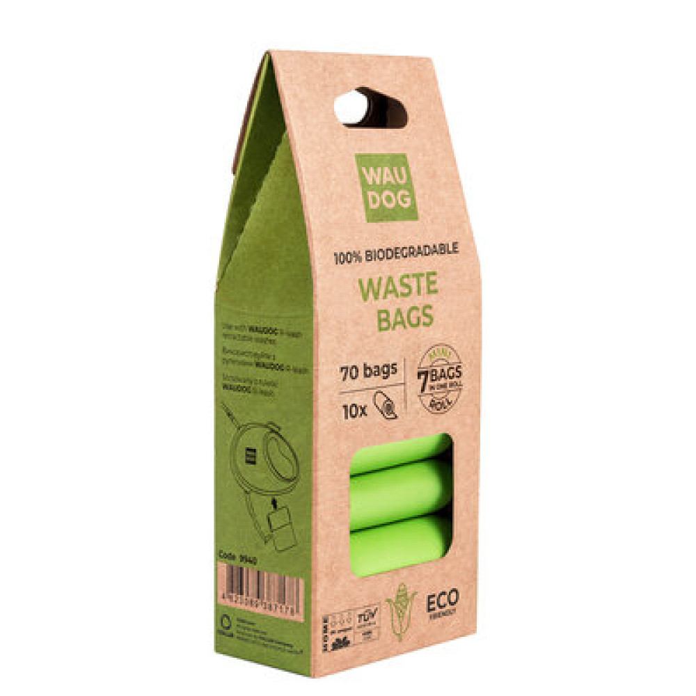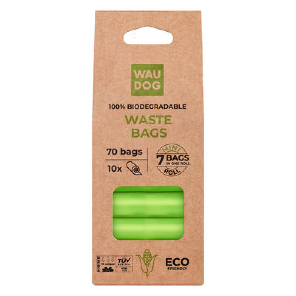Биоразлагаемые пакеты WAUDOG МИНИ 20×25 см — экологичное решение для прогулок: изготовлены из кукурузного крахмала, не содержат полиэтилена и полностью разлагаются.