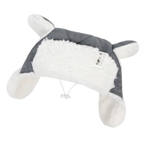 Шапка с ушками для собак серая S-109 — тёплый аксессуар для прогулок в прохладную погоду: стёганый верх, мягкая меховая подкладка и комфорт без давления на уши.