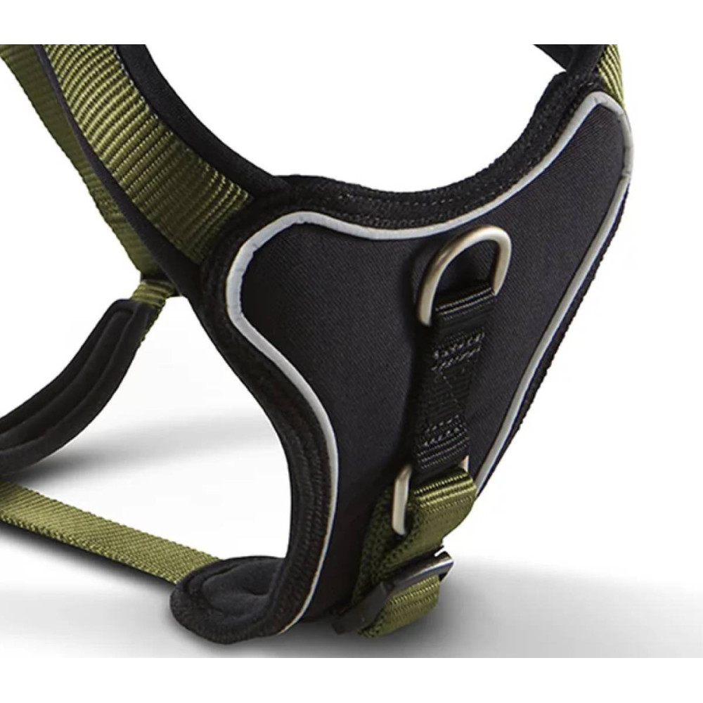 Сочетание прочного нейлона и мягкой неопреновой подкладки делает эту шлейку идеальной для ежедневного использования. Надежные застежки-фастексы позволяют быстро надевать и снимать амуницию, а гибкая регулировка ремней на груди и животе гарантирует идеальную посадку для собак любого телосложения.