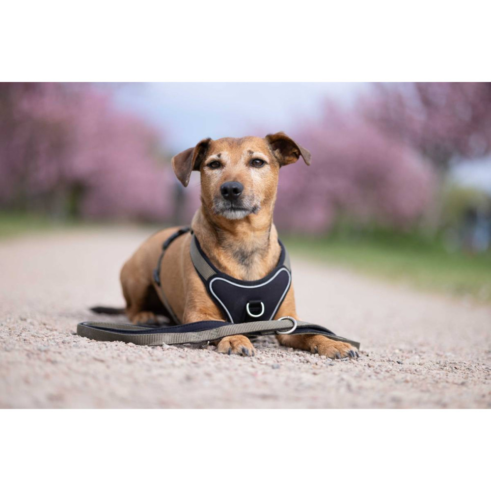 - Идеальная посадка: Ремни на груди и животе легко регулируются, позволяя идеально подогнать шлейку под индивидуальные параметры собаки.