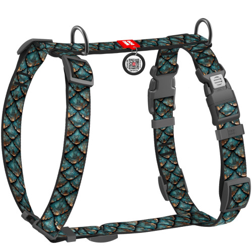 Шлея WAUDOG Nylon в фантастическом дизайне "Чешуя" превратит вашу собаку в мифического дракона! Этот яркий принт сочетает насыщенные цвета и визуальную текстуру, которая притягивает взгляды прохожих. Помимо сказочного вида, это прежде всего профессиональная анатомическая амуниция, которая заботится о здоровье вашего питомца.