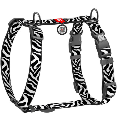 Шлея WAUDOG Nylon в дизайне "Зебра" — это вечная классика в современном исполнении. Контрастный черно-белый паттерн выглядит невероятно стильно и выразительно на собаках любого окраса: от светлых ретриверов до темных доберманов. Это выбор для тех, кто любит лаконичность, притягивающую взгляды.