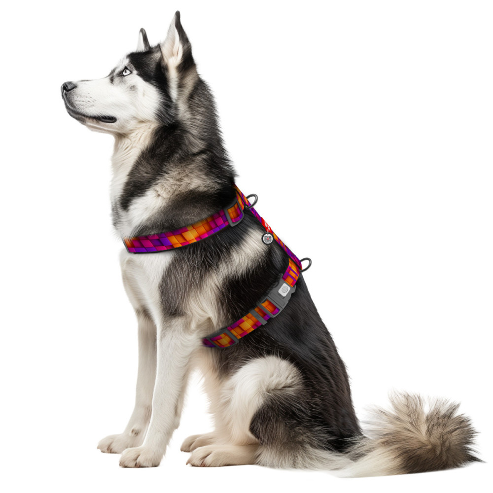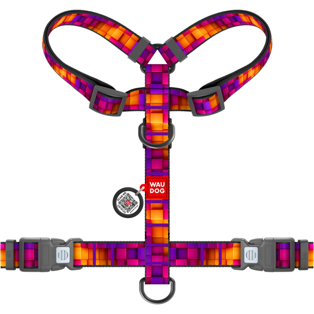 Шлея для собак WAUDOG Nylon в современном дизайне "Кубы 3Д" — это выбор для тех, кто ценит четкие линии и визуальный объем. Геометрический паттерн создает иллюзию трехмерного пространства, благодаря чему амуниция выглядит необычно и стильно на любом окрасе шерсти. Эта шлея для собак сочетает в себе трендовый вид и профессиональную анатомическую конструкцию.