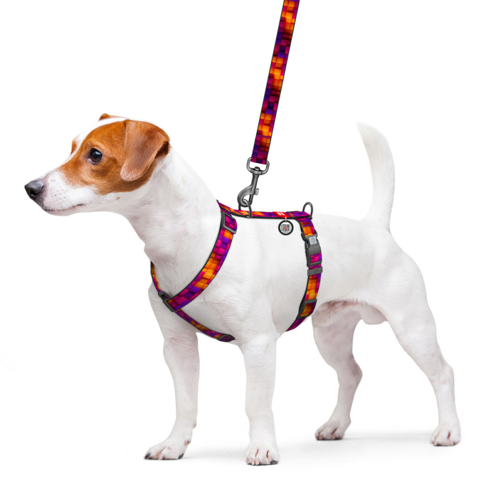 Для завершенного геометрического образа рекомендуем подобрать к этой шлее поводки для собак с аналогичным или однотонным дизайном.