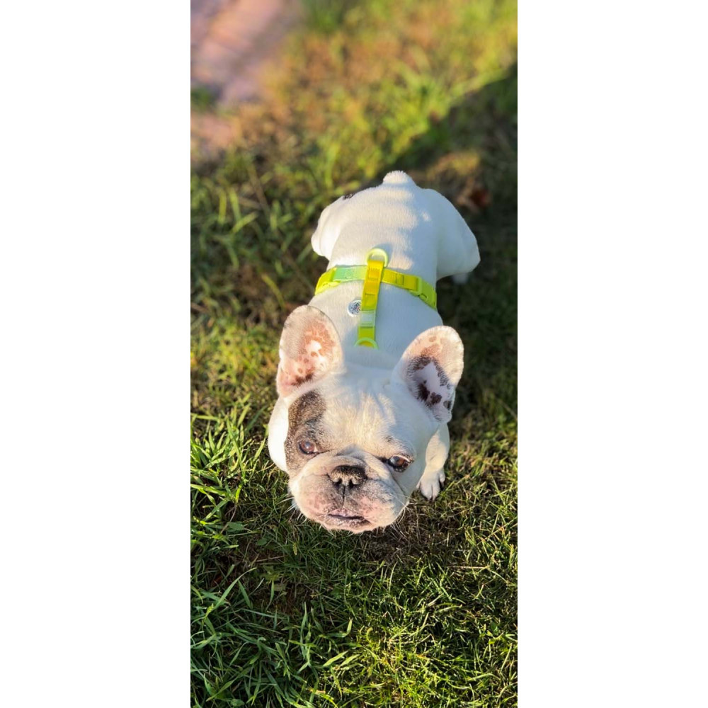 - Быстро ли пачкается неоновый цвет? Лента rPET имеет гладкую структуру, которая отталкивает грязь. Шлею легко отстирать в машинке при 30°C, и она снова станет яркой.