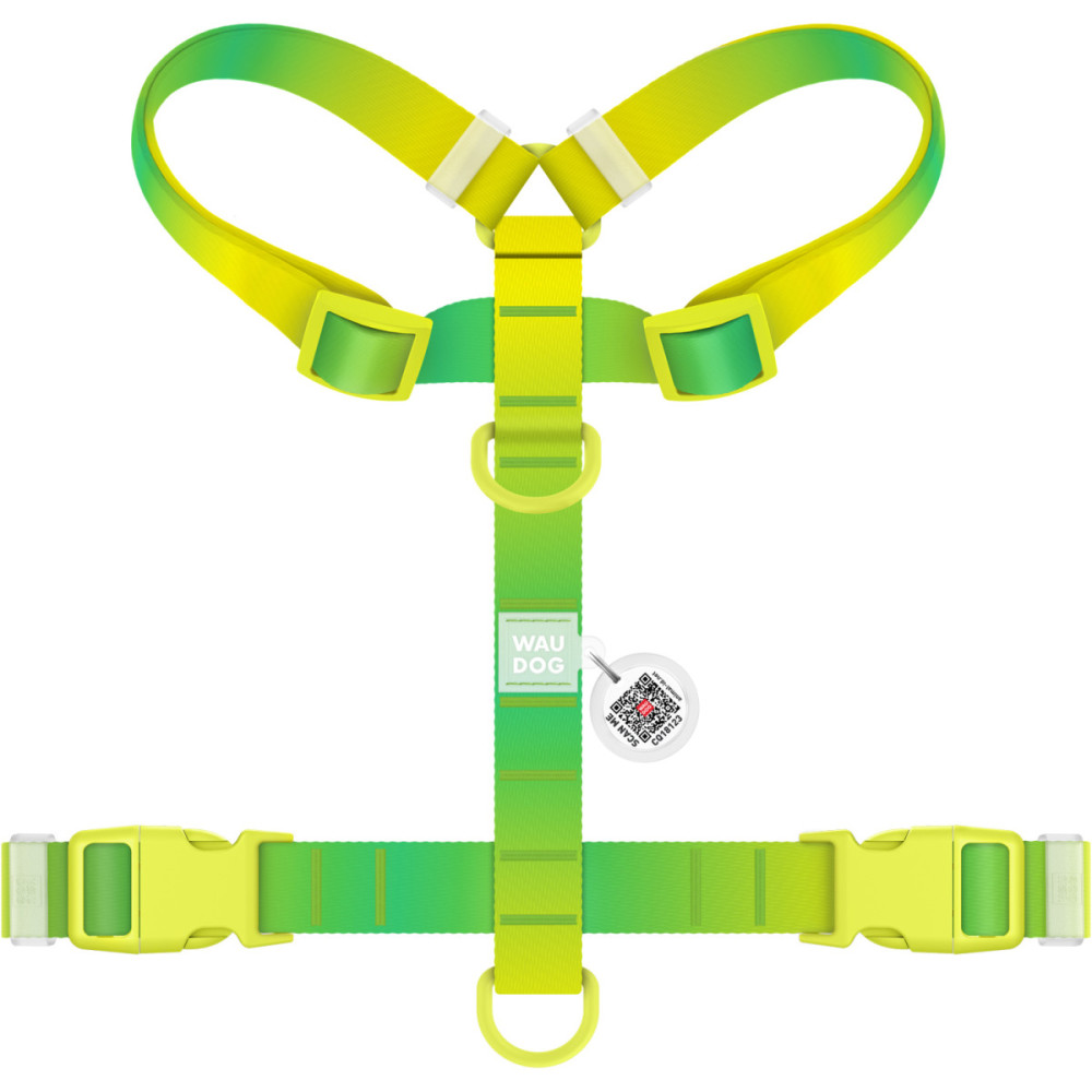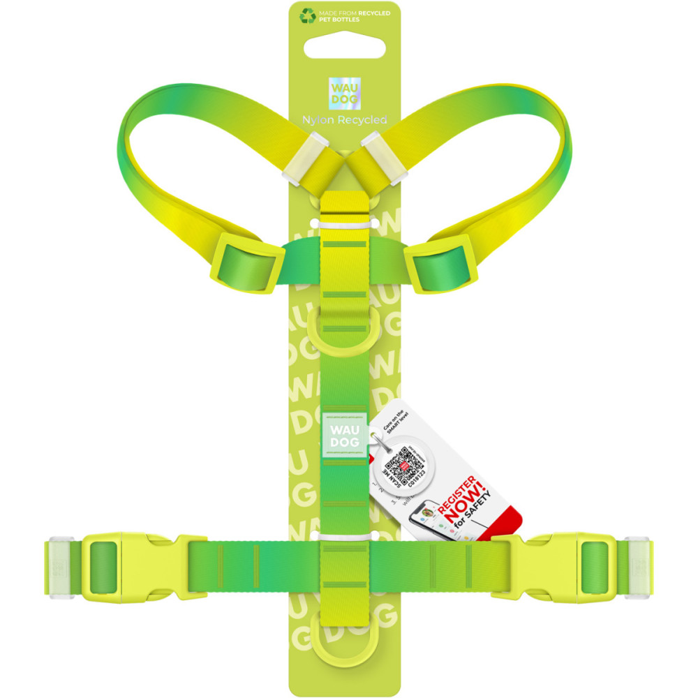 Яркая, заметная и экологичная Н-образная шлея серии WAUDOG Nylon Recycled в дизайне "Градиент Салатовый" — идеальный выбор для активных собак. Лента амуниции изготовлена из переработанного полиэстера (rPET). Благодаря использованию качественной пластиковой фурнитуры, эта модель чрезвычайно легкая, что обеспечивает собаке максимальную свободу движений.