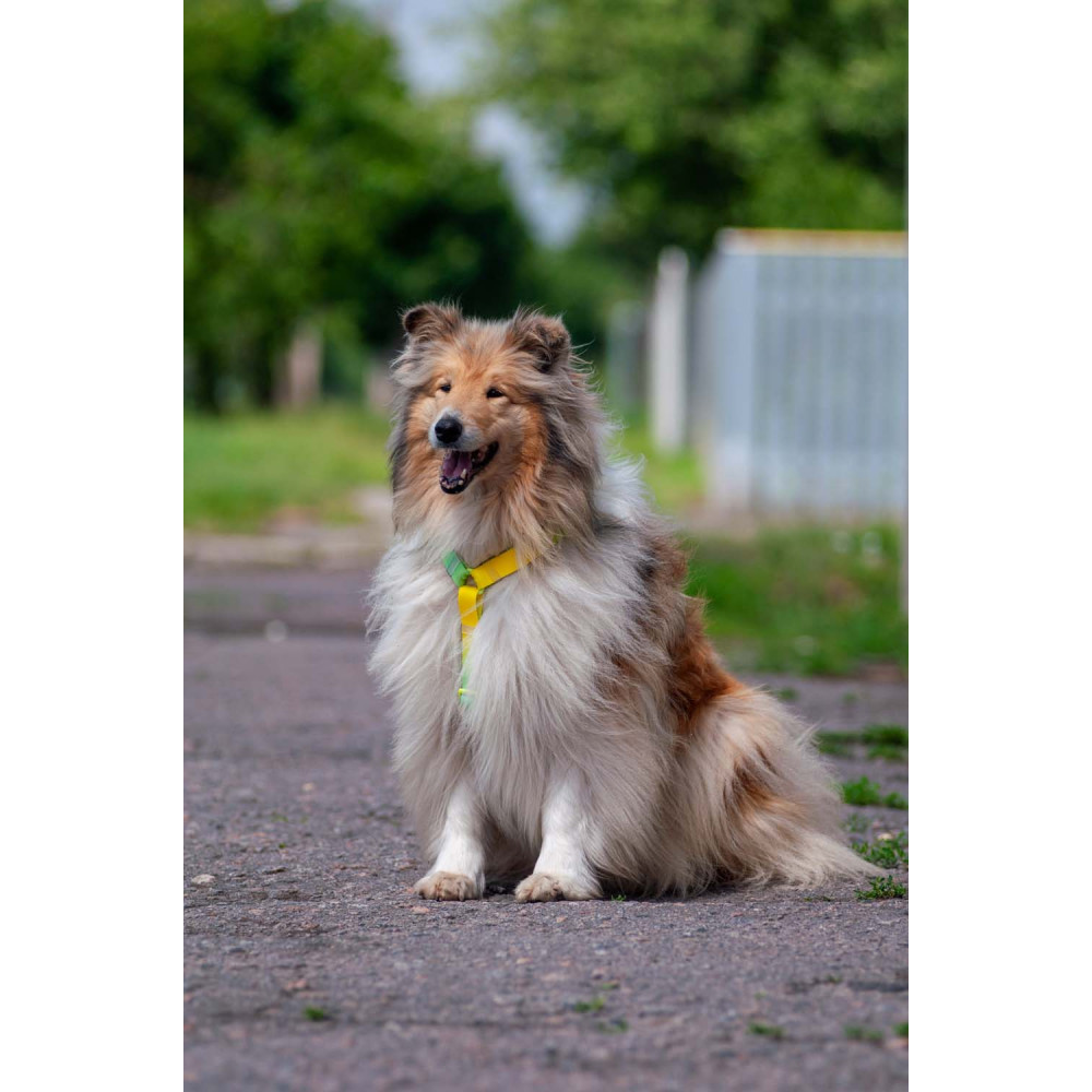 - High-Vis дизайн: яркий неоновый цвет делает собаку заметной издалека.