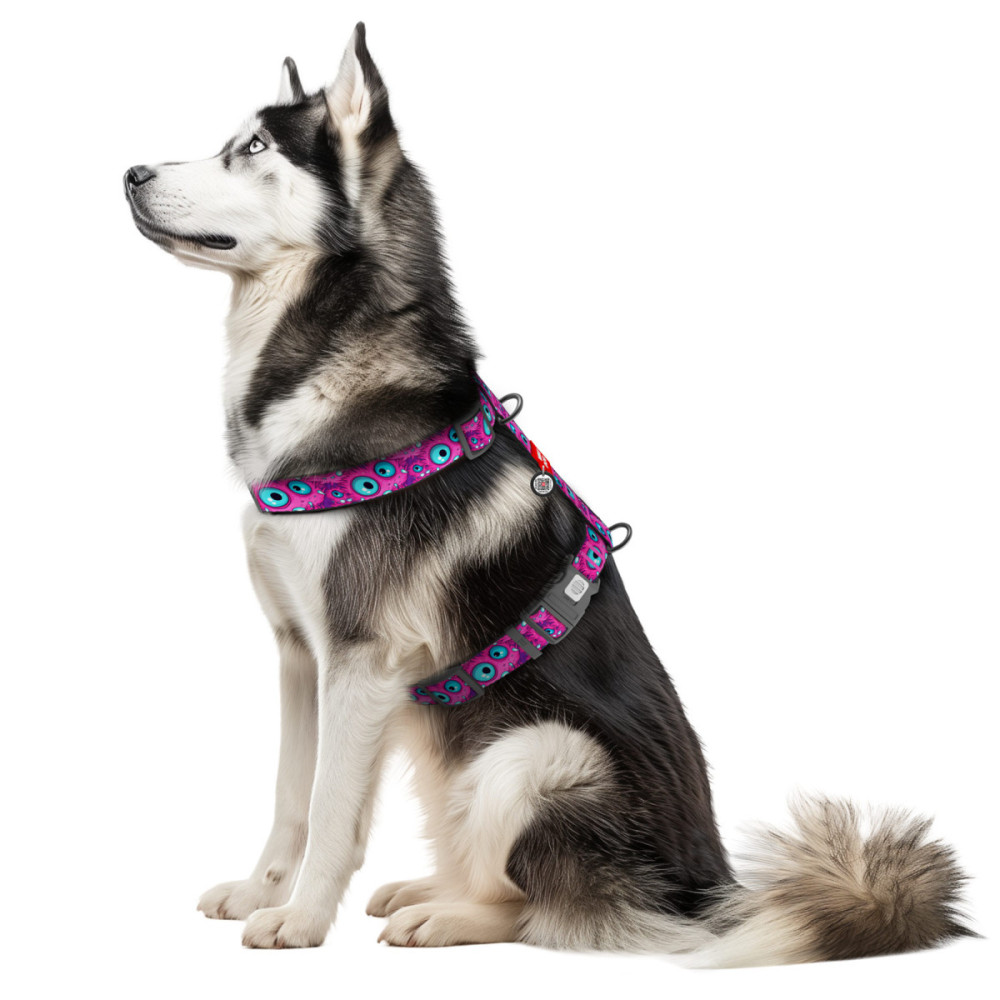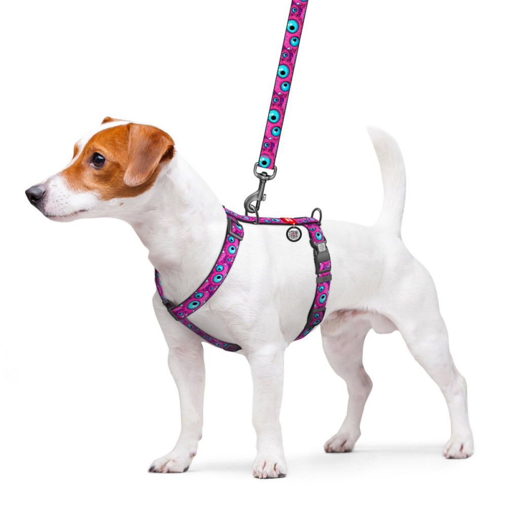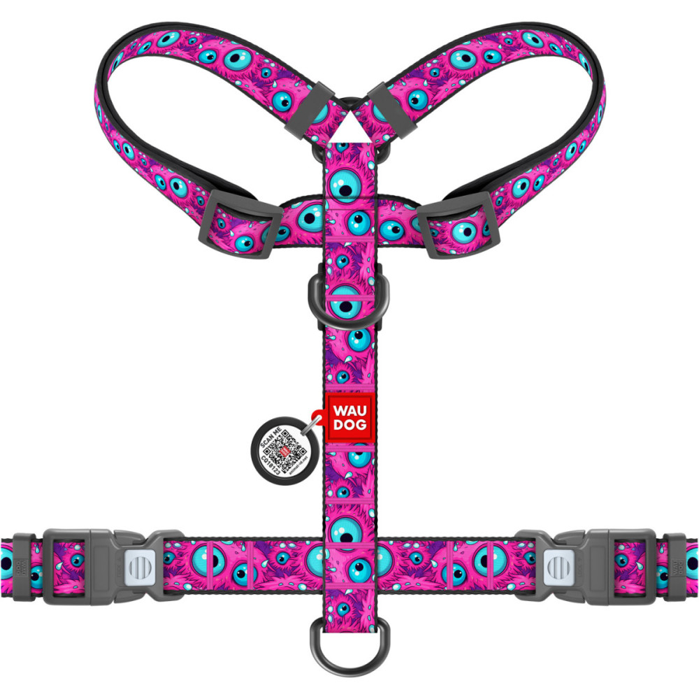 Шлея для собак WAUDOG Nylon в смелом дизайне "Глаз монстра" — это выбор для тех, кто любит быть в центре внимания. Яркий, немного "сумасшедший" принт с глазами словно намекает: "Я слежу за тобой!". Эта шлея для собак не только подчеркивает харизму вашего питомца, но и обеспечивает ему максимальный комфорт благодаря правильной анатомии.