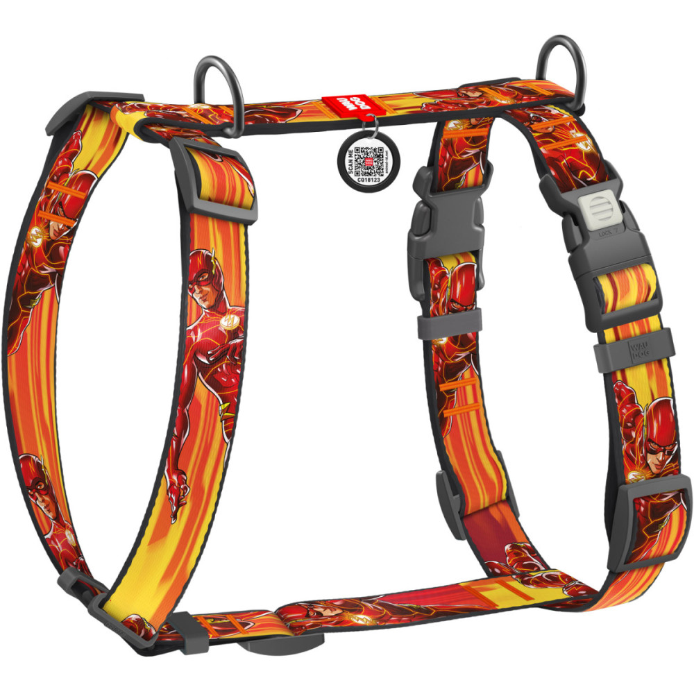 Шлея для собак WAUDOG Nylon во взрывном дизайне "Скорость Флеша" создана для самых активных и быстрых питомцев. Яркие цвета и динамичный принт из комиксов DC превращают прогулку в супергеройскую миссию. Эта шлея для собак сочетает в себе стиль поп-культуры и профессиональную анатомическую конструкцию, обеспечивающую комфорт во время бега.