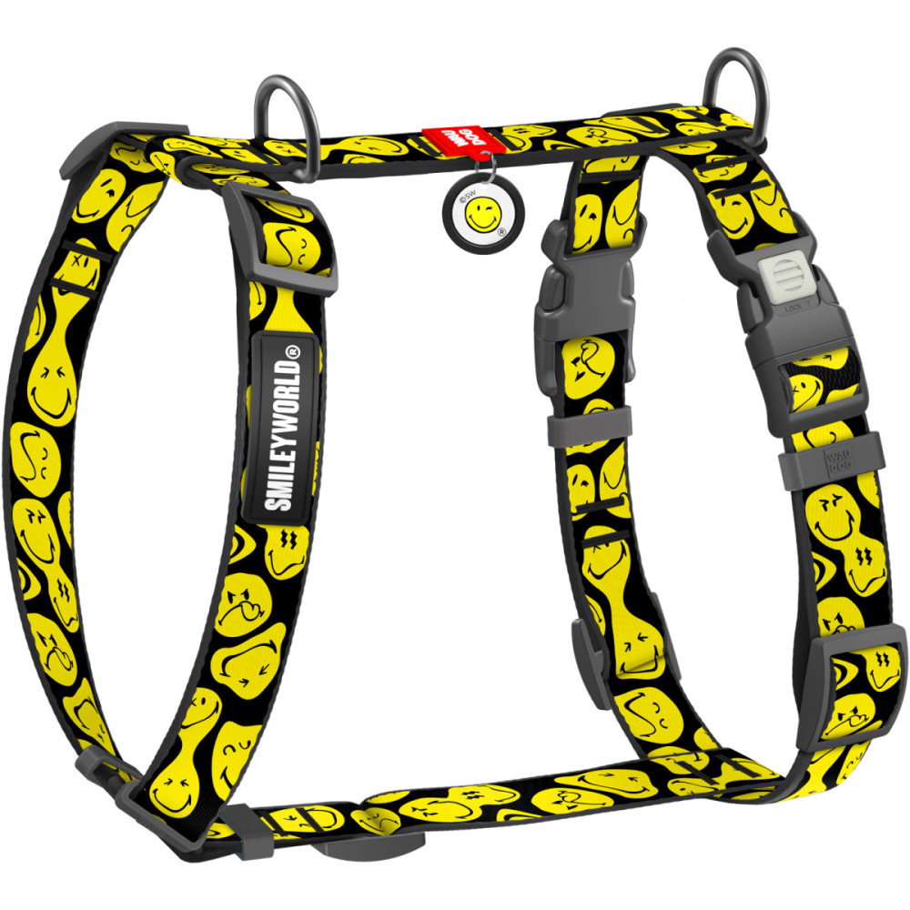 Шлея для собак WAUDOG Nylon в контрастном дизайне "Смайлы на черном" — это выбор тех, кто ценит стиль и лаконичность с ноткой юмора. Яркие желтые эмодзи на глубоком черном фоне выглядят очень выразительно и подходят к любому окрасу шерсти. Эта шлея для собак сочетает в себе трендовый вид и профессиональную анатомическую конструкцию.