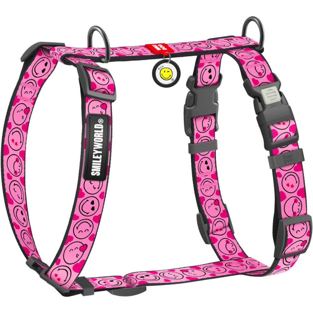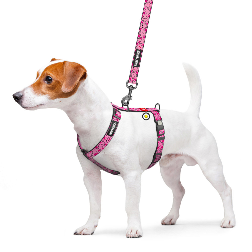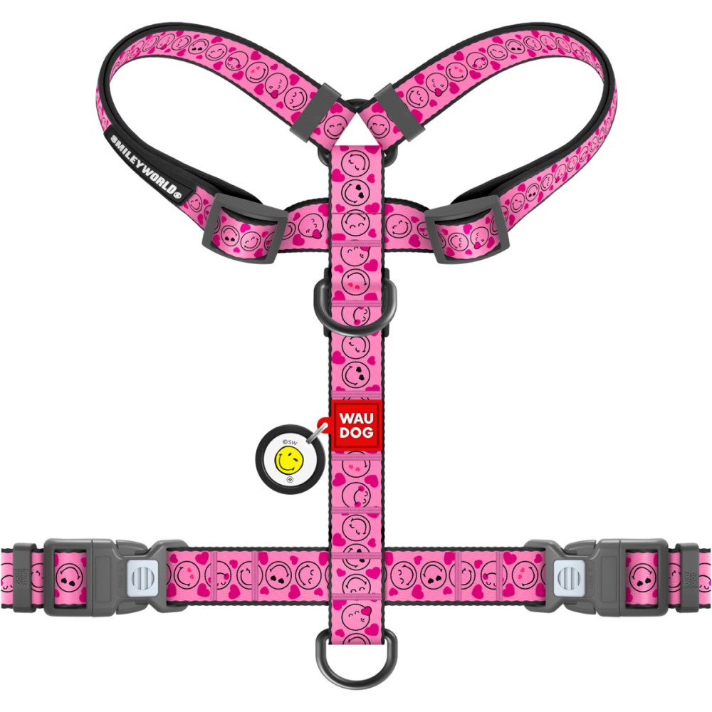 Шлея для собак WAUDOG Nylon в жизнерадостном дизайне "Смайлы на розовом" создана для того, чтобы дарить радость. Яркие эмодзи на нежном фоне превращают каждую прогулку в праздник хорошего настроения. Эта шлея для собак — идеальный выбор для тех, кто хочет подчеркнуть дружелюбие своего питомца, не жертвуя его комфортом и безопасностью.