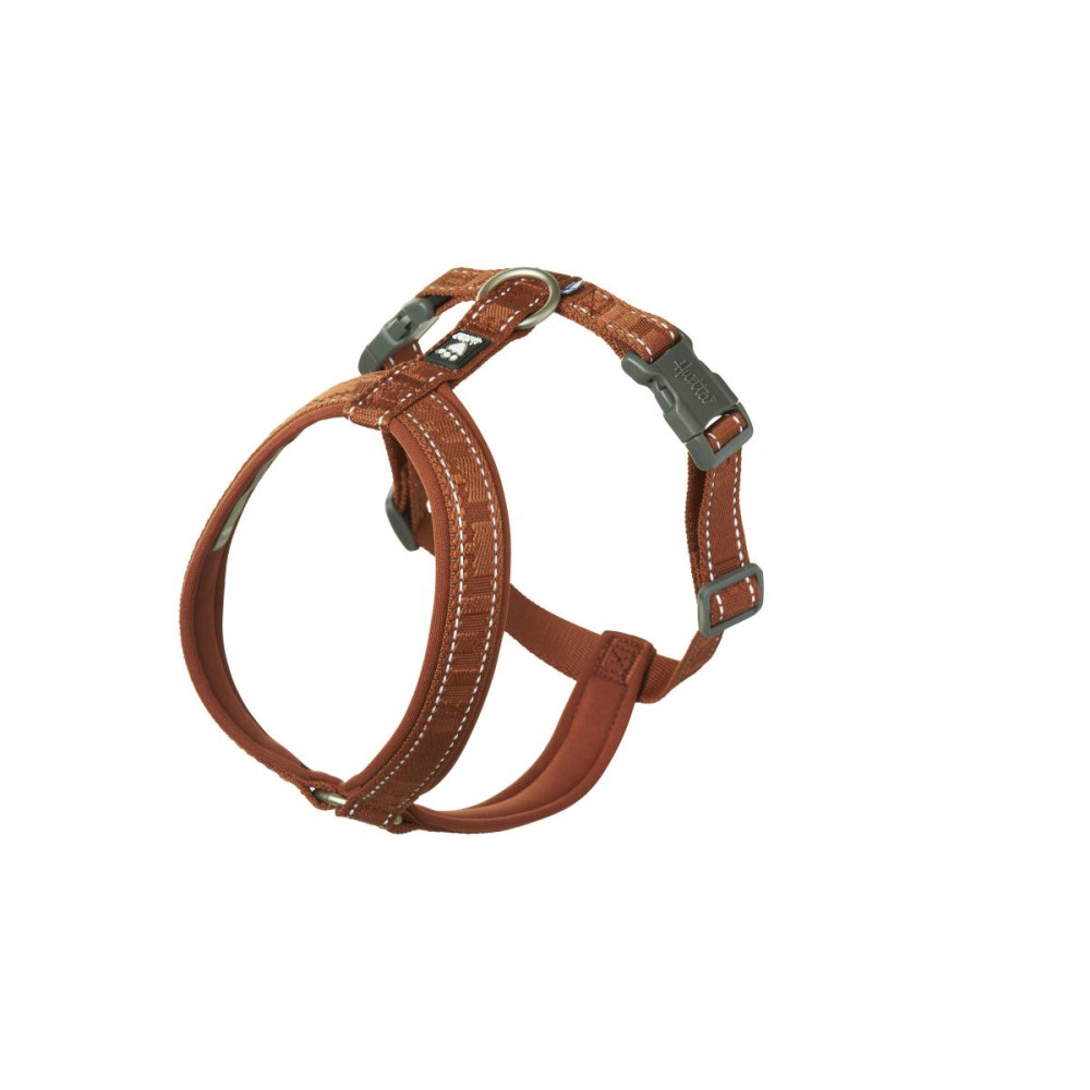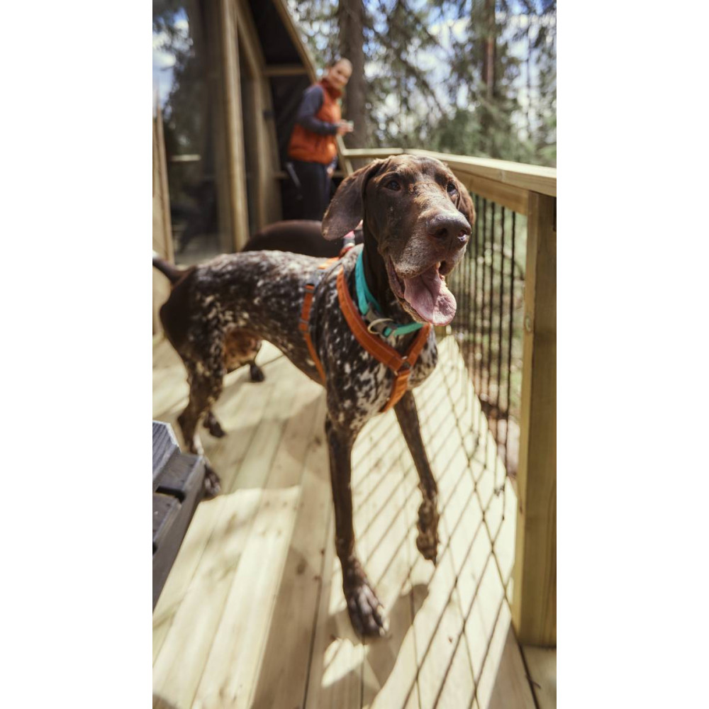 Y-образный дизайн шлейки Hurtta Casual позволяет равномерно распределить нагрузку на грудную клетку собаки во время рывков, снимая давление с шеи и спины. Такая форма не сковывает движения плечевых суставов, что критически важно для активных собак и пород с широкой грудной клеткой.