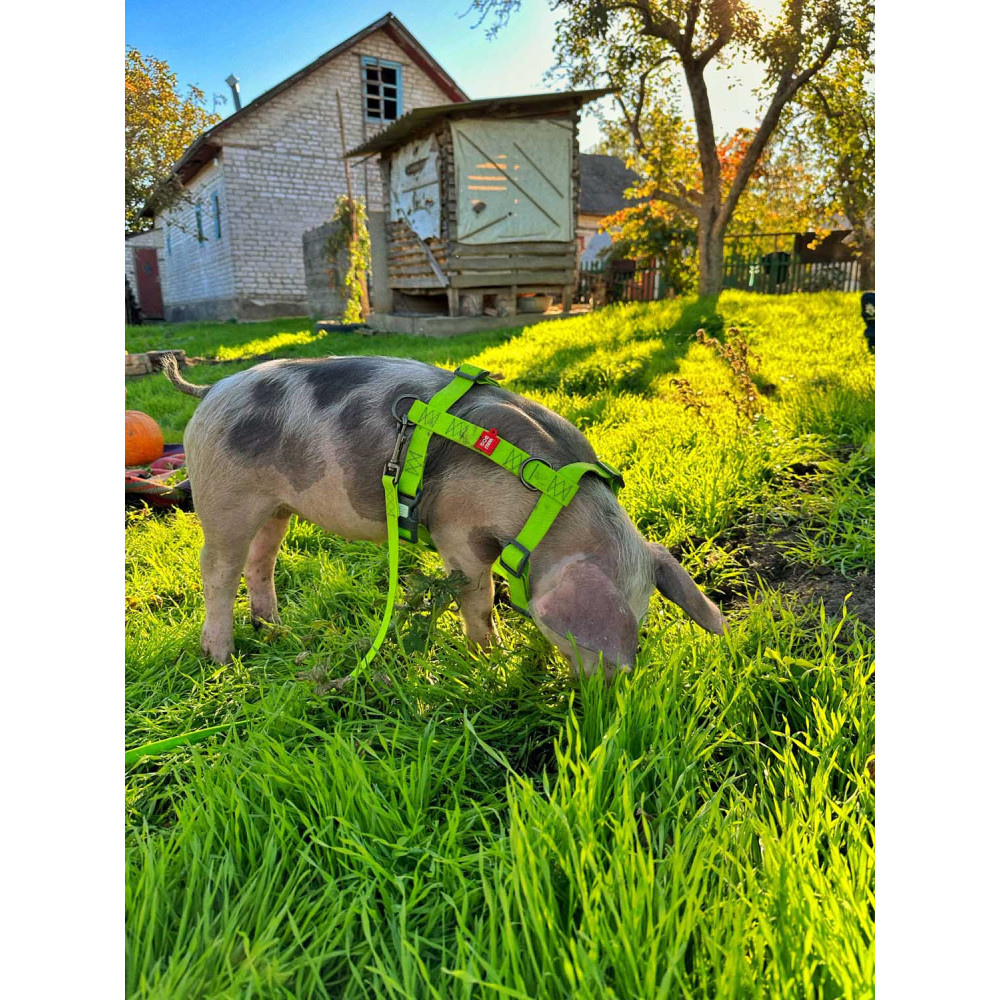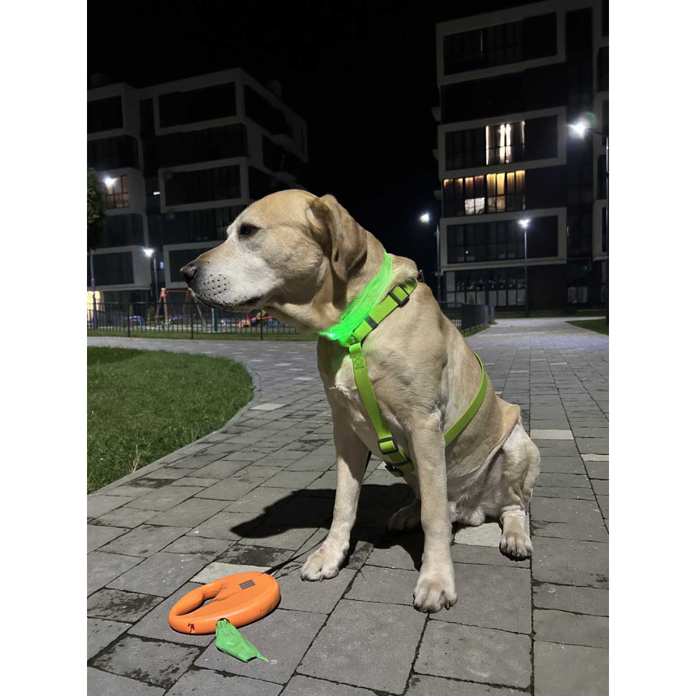Чтобы создать стильный и заметный комплект, рекомендуем дополнить шлею, выбрав поводки для собак серии Waterproof в салатовом цвете.