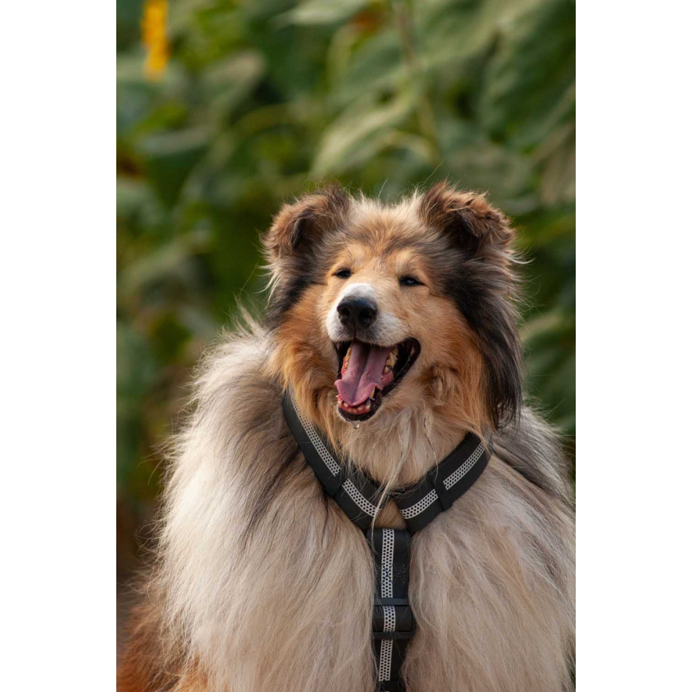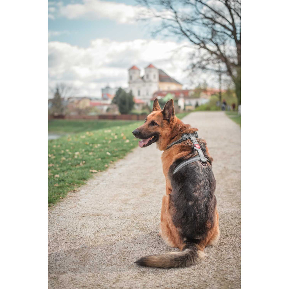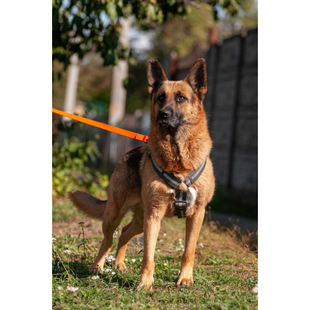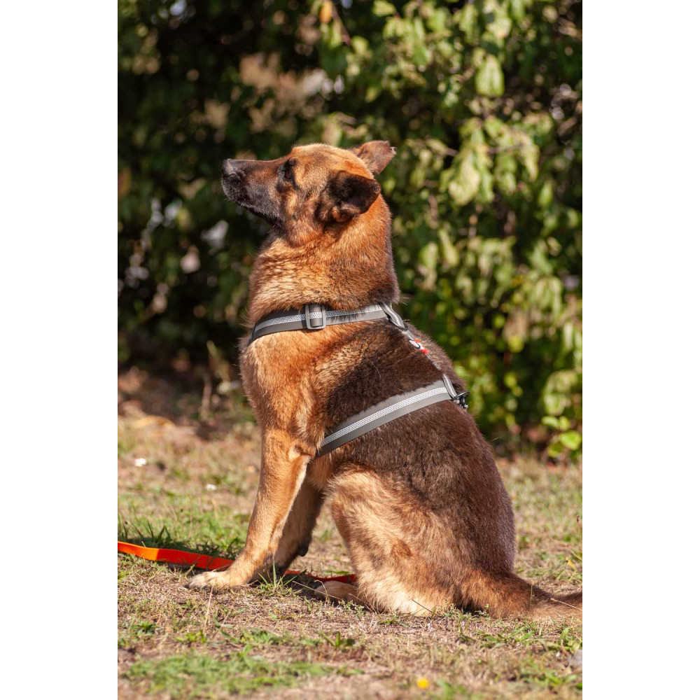 Амуниция изготовлена из материала COLLARTEX: он не боится воды, грязи и не скользит в руках. Серый цвет максимально практичен и подходит к любому окрасу шерсти. Шлея станет незаменимой для вечерних прогулок в любую погоду, особенно если комбинировать ее с дождевиками для собак.