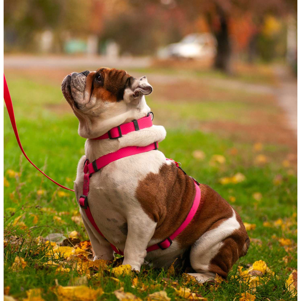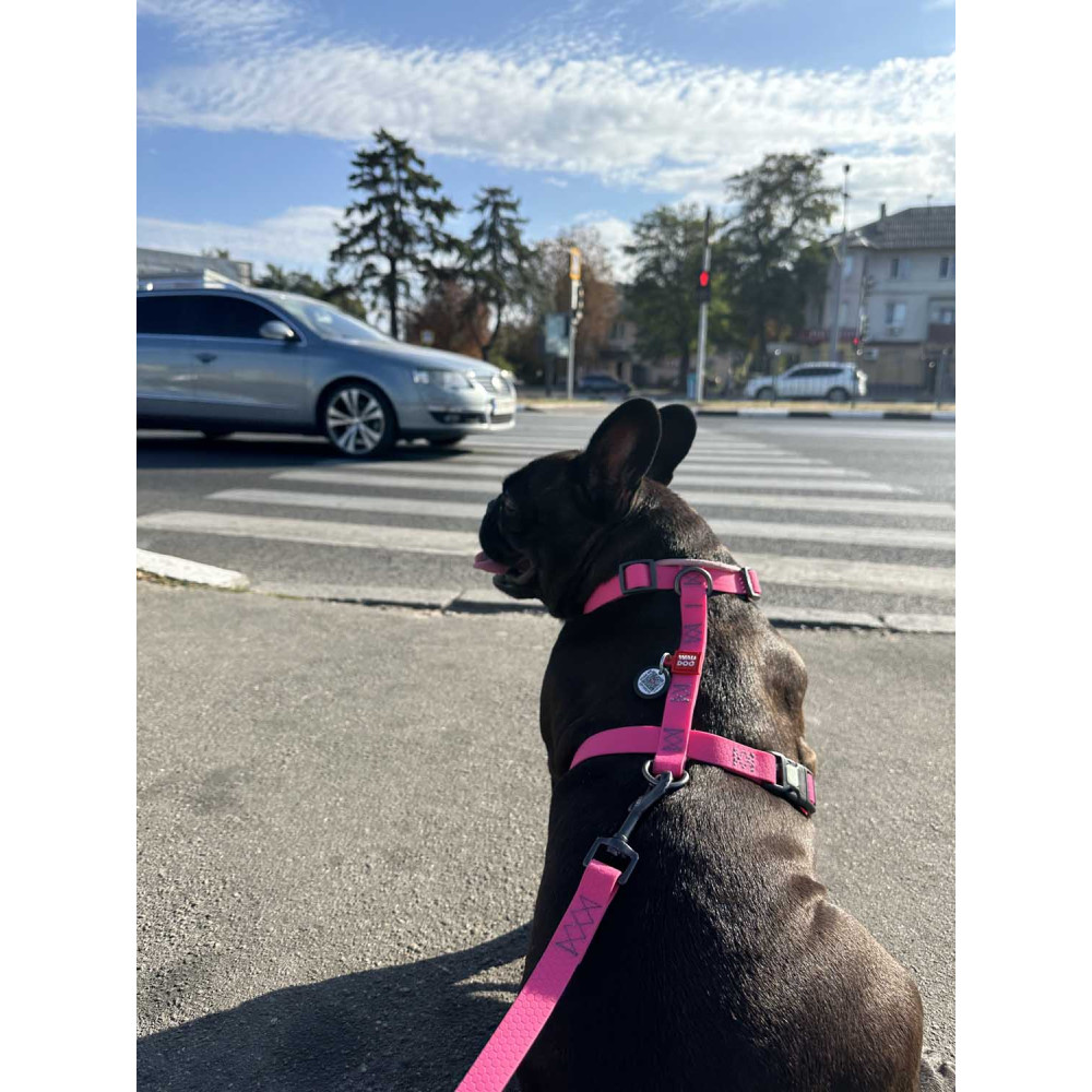 Стильная Н-образная шлея серии WAUDOG Waterproof в нежном, но ярком розовом цвете — это сочетание красоты и технологичности. Амуниция изготовлена из материала COLLARTEX: он не боится воды, а любая грязь смывается простой водой, не оставляя пятен. Это идеальный выбор для модных прогулок даже в дождь, особенно если вы комбинируете шлею с дождевиками для собак.