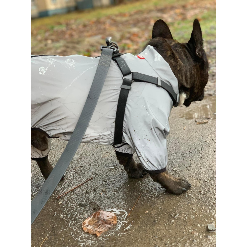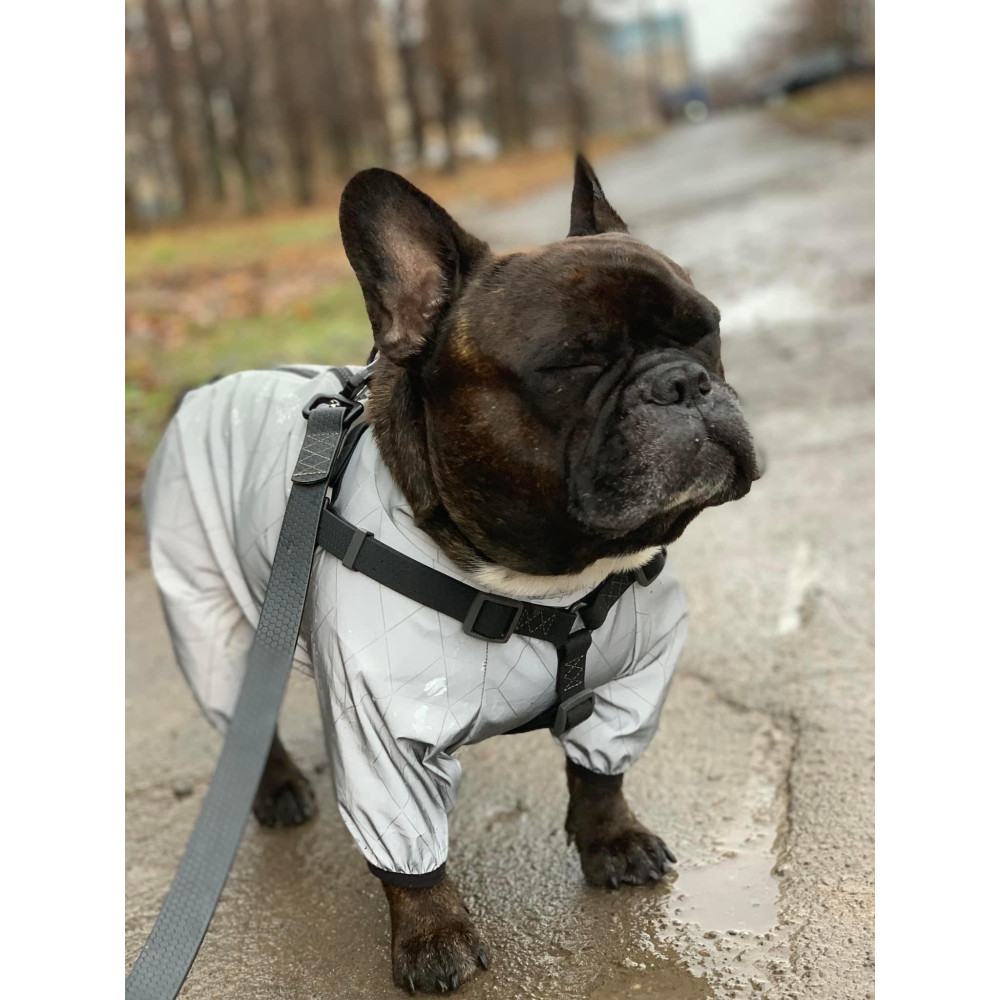 Современный дизайн: сочетание матовой черной ленты и серебристой металлической фурнитуры выглядит дорого и сдержанно. Такая шлея универсальна: она подходит абсолютно всем породам и гармонично дополняет любую одежду для собак.