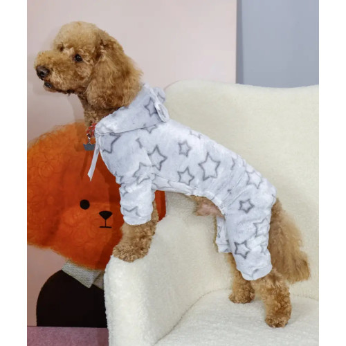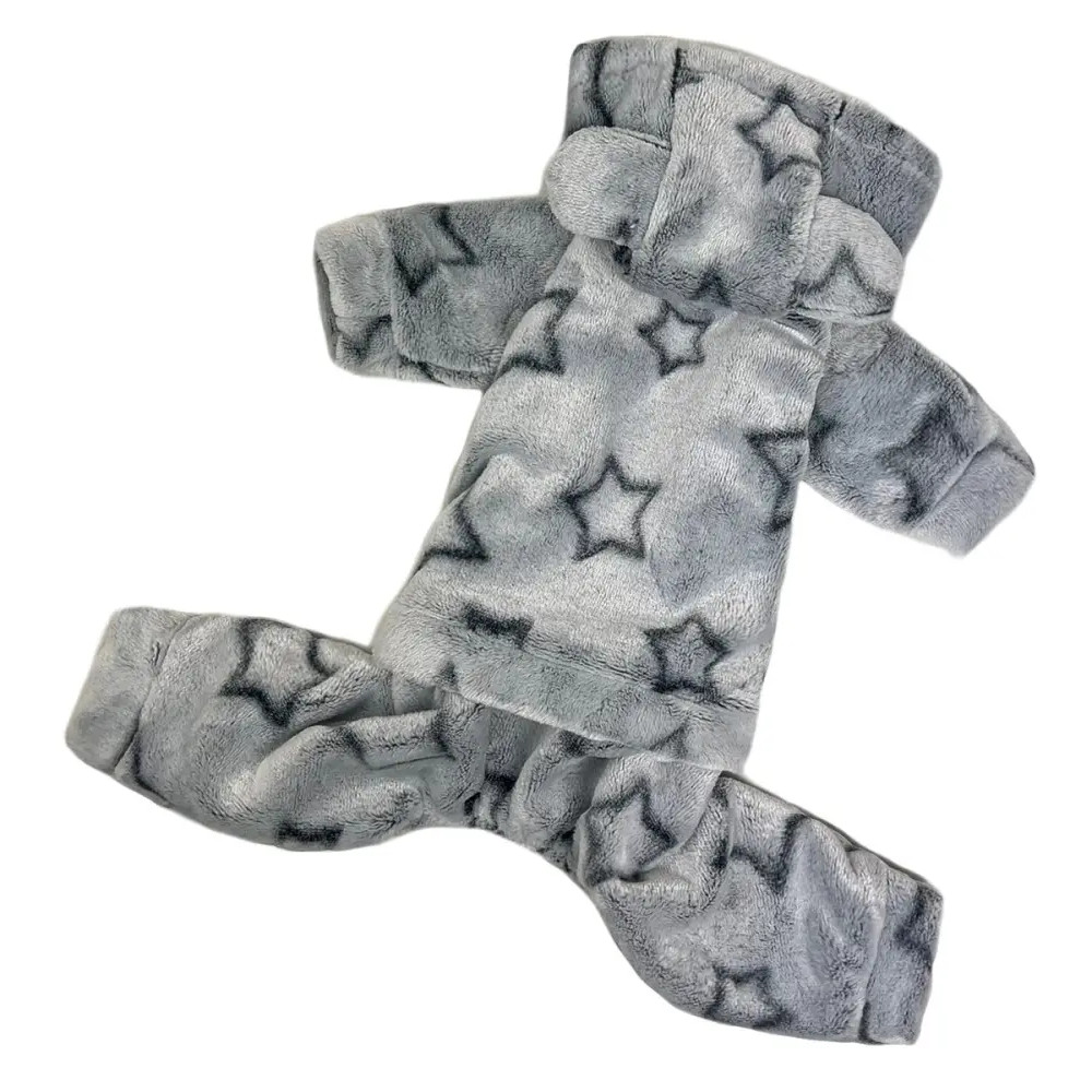 Костюм для собак махровый «Звёзды» серый D-174 — это практичная и стильная одежда для питомцев. Мягкая махровая ткань надёжно сохраняет тепло и создаёт уют во время прогулок даже в холодный день.
