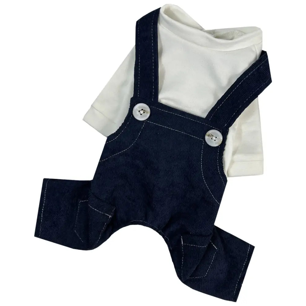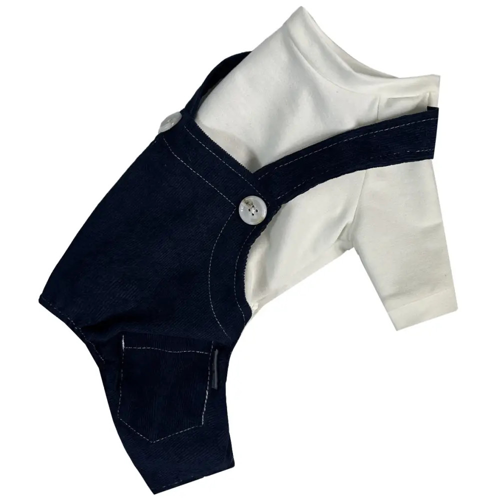 Костюм с лямками вельвет синий D-210 – удобный лёгкий комплект для собак на весну и лето.