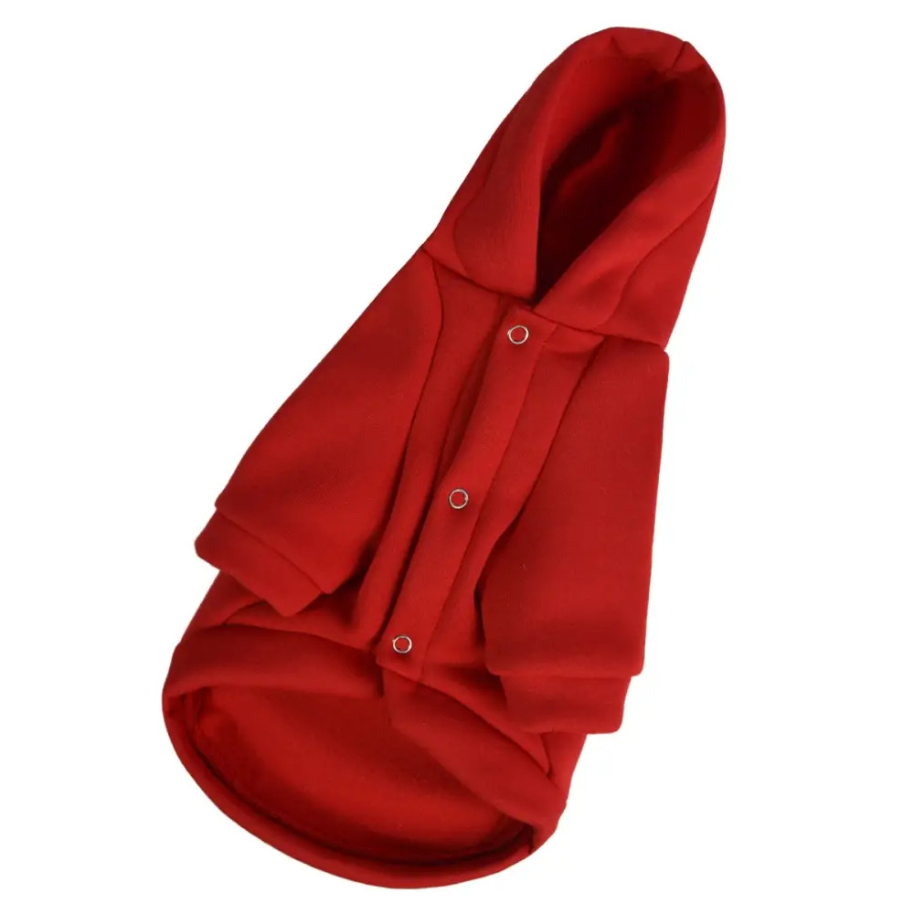 - Простая застежка: Толстовка застегивается на кнопки на животе, что позволяет быстро собрать питомца на прогулку.
