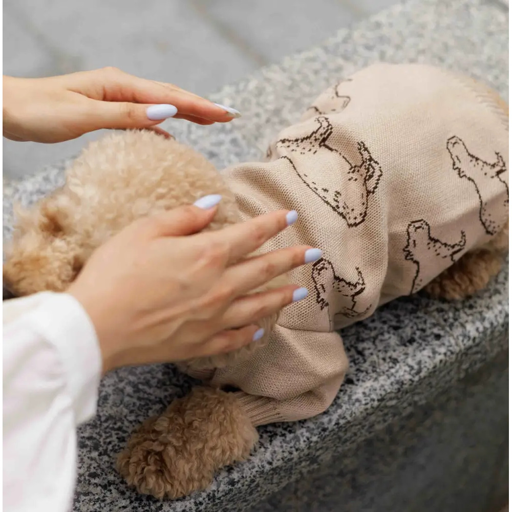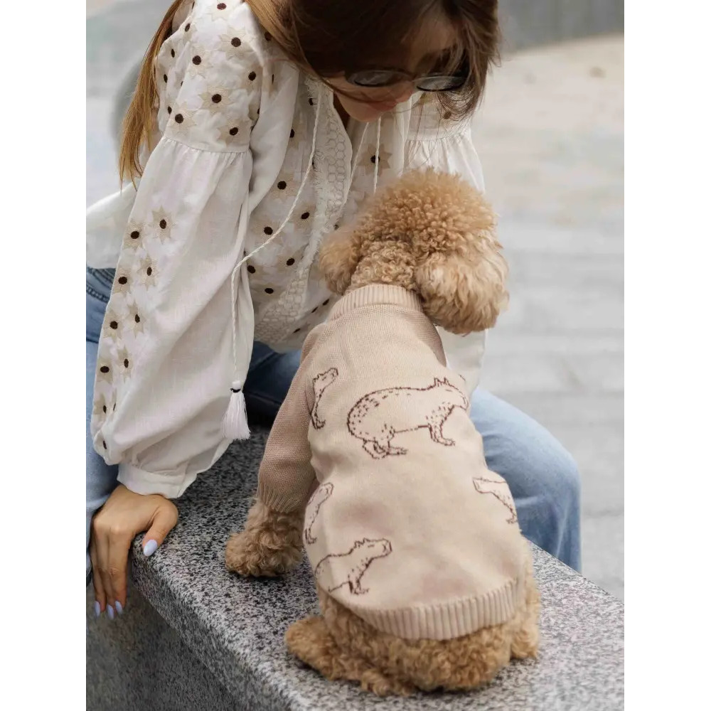 Вязаный свитер для собак «Капибары» бежевый Y-332 – это стильное решение для прогулок и домашнего уюта. Благодаря составу пряжи (40% хлопок, 40% акрил, 20% шерсть) модель сочетает мягкость, тепло и долговечность.