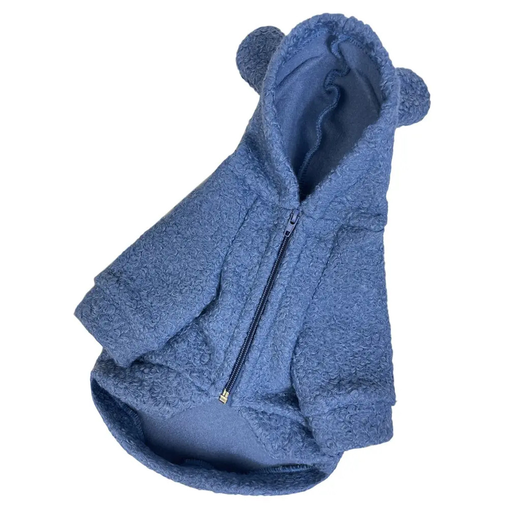 Толстовка для собак барашек синяя Y-311 — уютная и стильная одежда для питомца на холодное время года. Верх выполнен из букле-шерсти (60% шерсть, 40% полиэстер), внутри мягкая флисовая подкладка, которая сохраняет тепло.