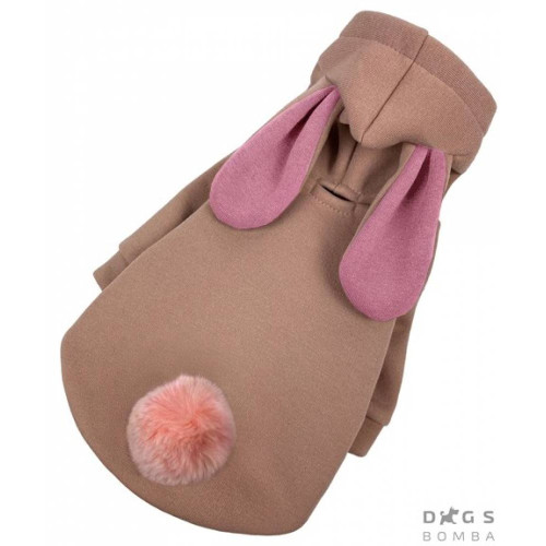 На капюшоне ушки, снизу толстовки помпон из меха кролика.