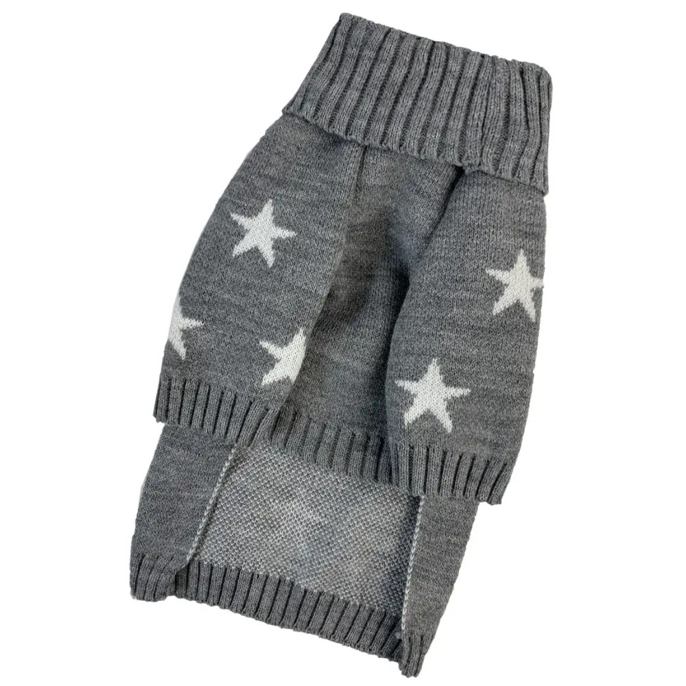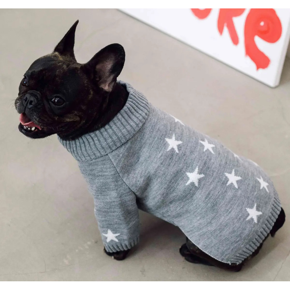 Вязаный свитер "Звёздочки" серого цвета – это модная и практичная одежда для собак, которая обеспечит тепло и удобство во время прогулок в прохладную погоду.