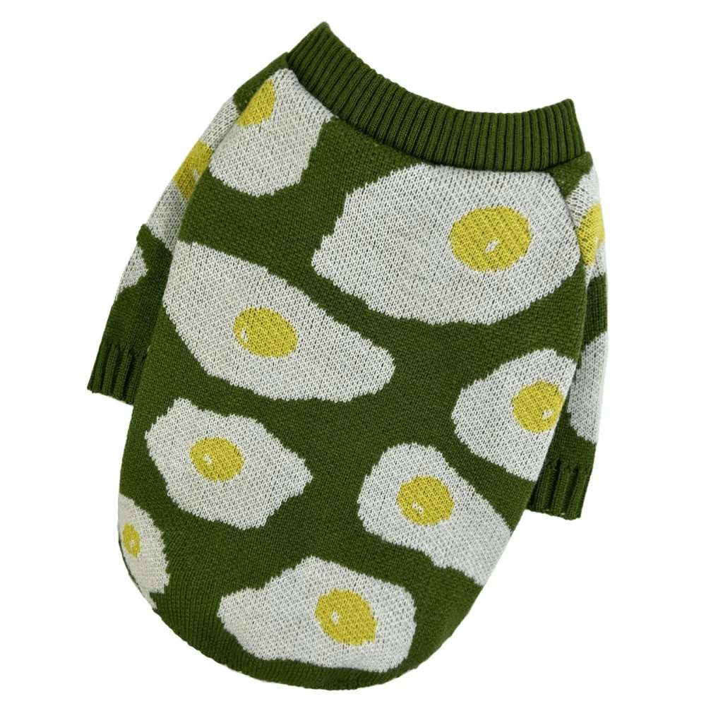 - Декор: тематическая нашивка или вывязанный рисунок «Яичница».