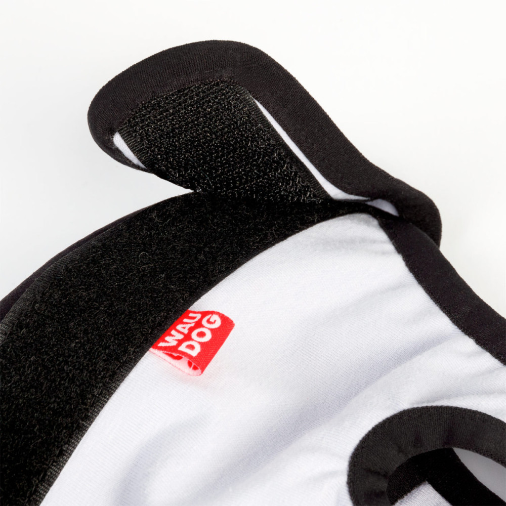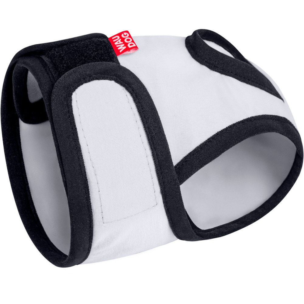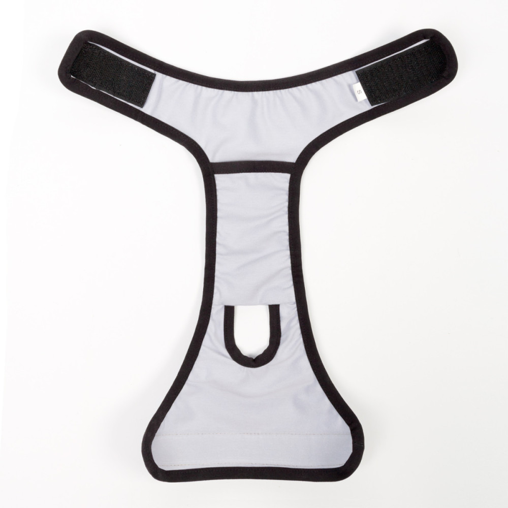 - Удобная фиксация: Широкая липучка позволяет быстро надеть пояс и точно отрегулировать его объем по талии собаки.