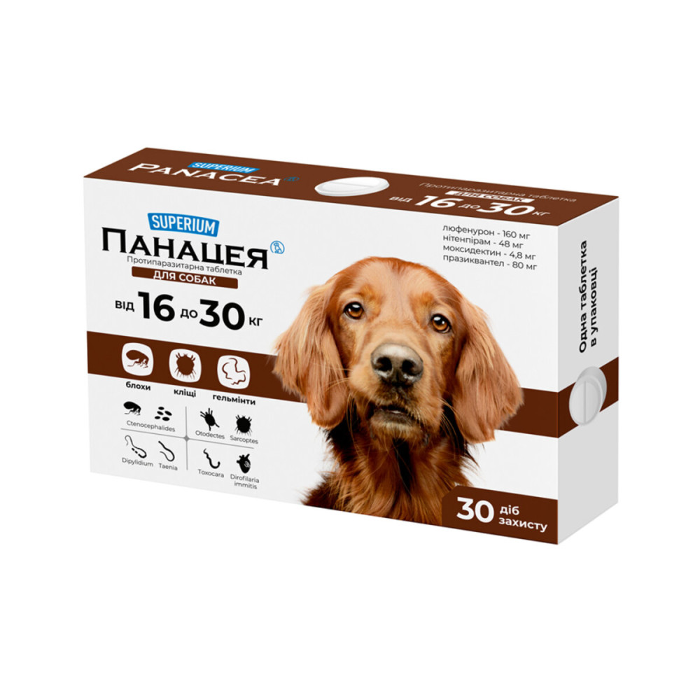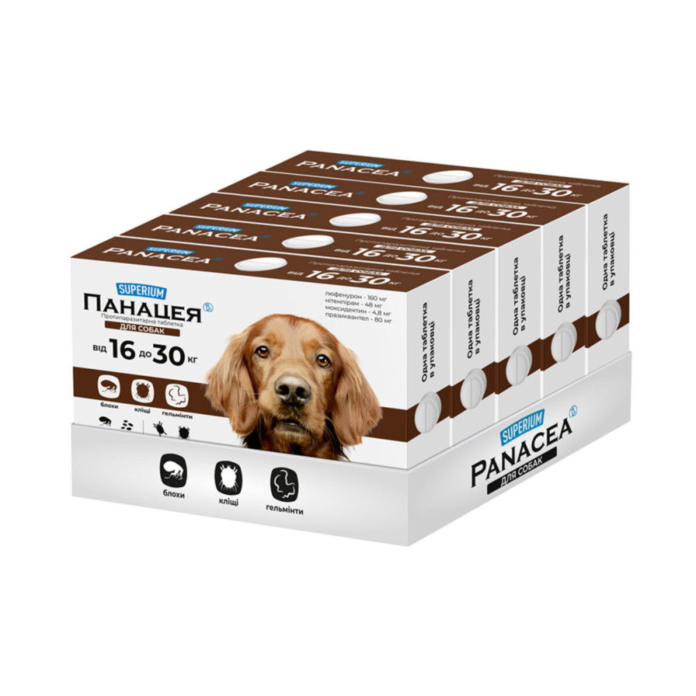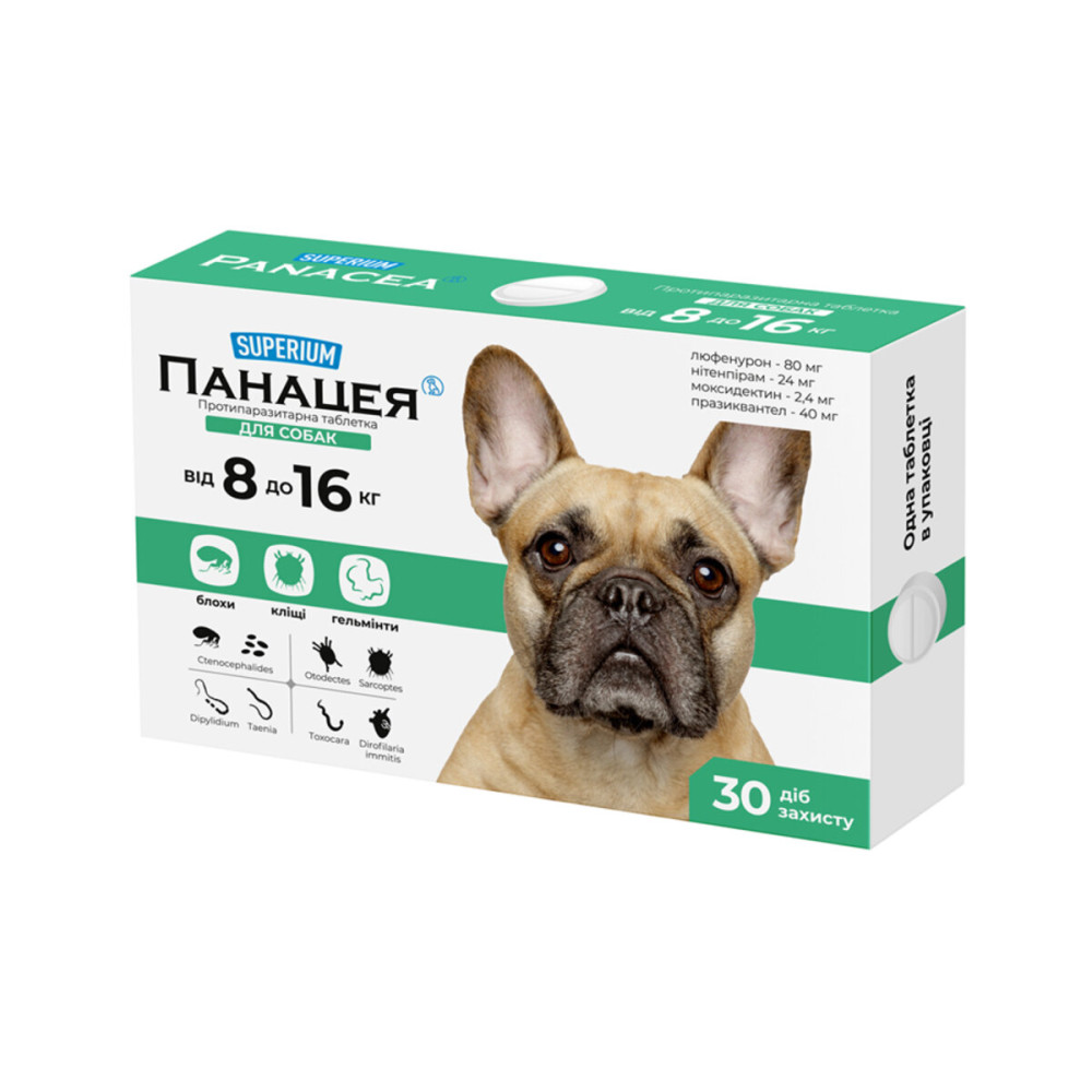 Характеристики противопаразитарной таблетки для собак SUPERIUM Панацея: