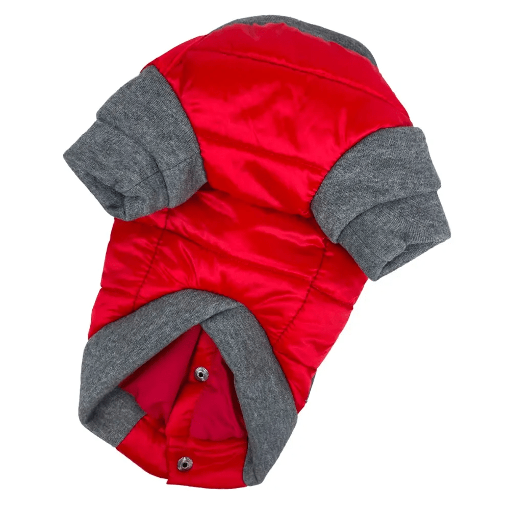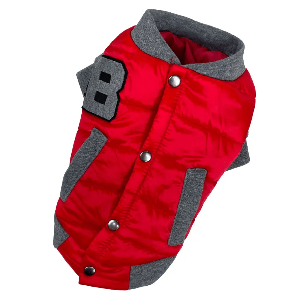 Куртка-бомбер для собак Dogs Bomba K-70 красного цвета создана для защиты питомца от холодной и сырой погоды. Изделие выполнено из прочной водоотталкивающей плащевки и утеплено слоем синтепона. Удобная застежка на кнопках расположена на спине, что облегчает одевание. Эта модель рассчитана на температурный режим до -10°C. Для более суровых морозов рекомендуем рассмотреть категорию [зимняя одежда для собак](https://test.4dog.com.ua/ru/odezhda-dlya-sobak/zimnyaya-odezhda-dlya-sobak/).