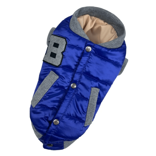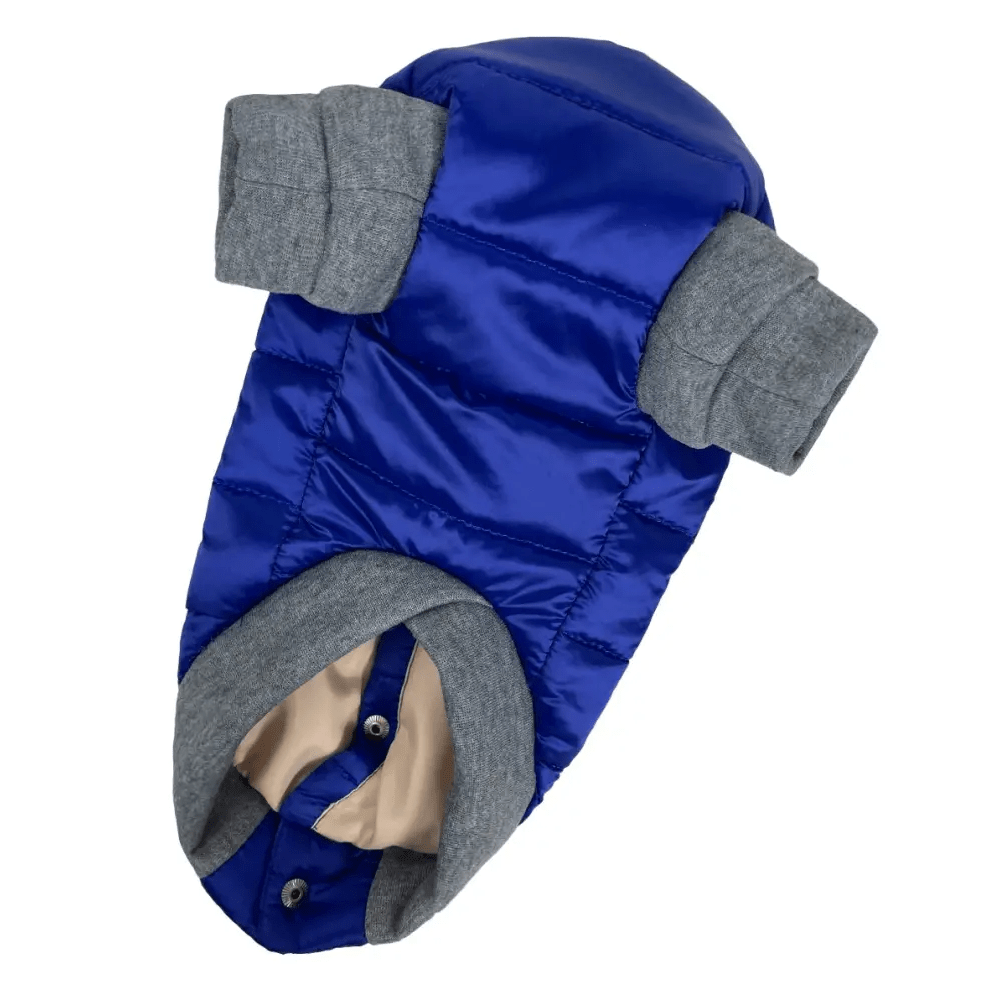 Куртка-бомбер для собак Dogs Bomba K-71 синего цвета создана для защиты питомца от ветра и осадков в холодное время года. Модель выполнена из плотной водоотталкивающей плащевки и утеплена слоем синтепона, что делает её подходящей для прогулок при температуре до -10°C. Эта функциональная [зимняя одежда для собак](https://test.4dog.com.ua/ru/odezhda-dlya-sobak/zimnyaya-odezhda-dlya-sobak/) имеет удобную посадку и не сковывает движений животного.