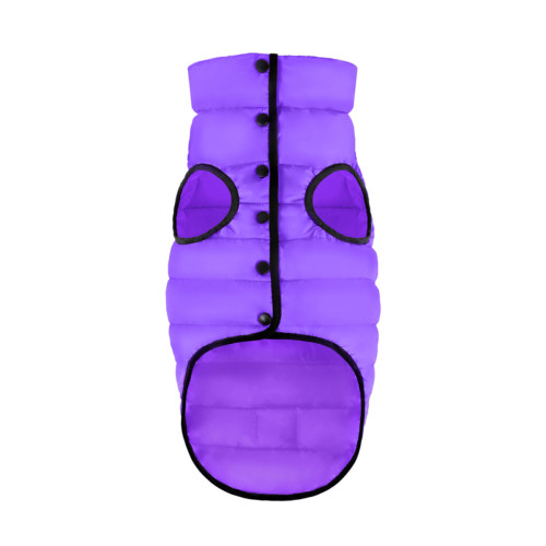 Куртка-жилетка для собак AiryVest ONE фиолетового цвета — это практичное решение для защиты питомца от холода и ветра. Изделие выполнено в минималистичном спортивном стиле и утеплено наполнителем нового поколения Altmicro. Эта зимняя одежда для собак рассчитана на температурный режим **до -10°C**, а также отлично подходит для демисезонного периода. Благодаря двойному ряду кнопок объем изделия легко регулируется, обеспечивая комфортную посадку без стеснения движений.