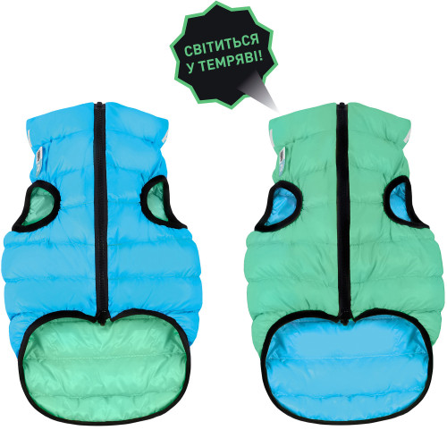Салатово-голубая жилетка для собаки AiryVest прекрасно подходит для холодной весны, сухой осени и мягкой зимы.