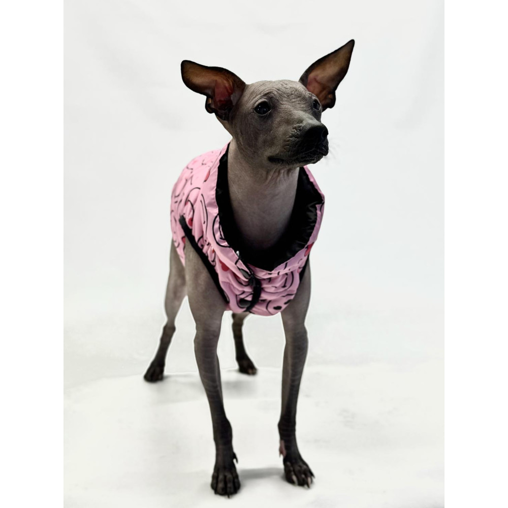 Курточка для собак WAUDOG Clothes с рисунком «Смайлы на розовом» — это удобная мультисезонная одежда, созданная специально для комфорта вашего питомца. Двойной ряд кнопок позволяет легко регулировать объем, обеспечивая комфортную посадку для собак любых размеров и пород.