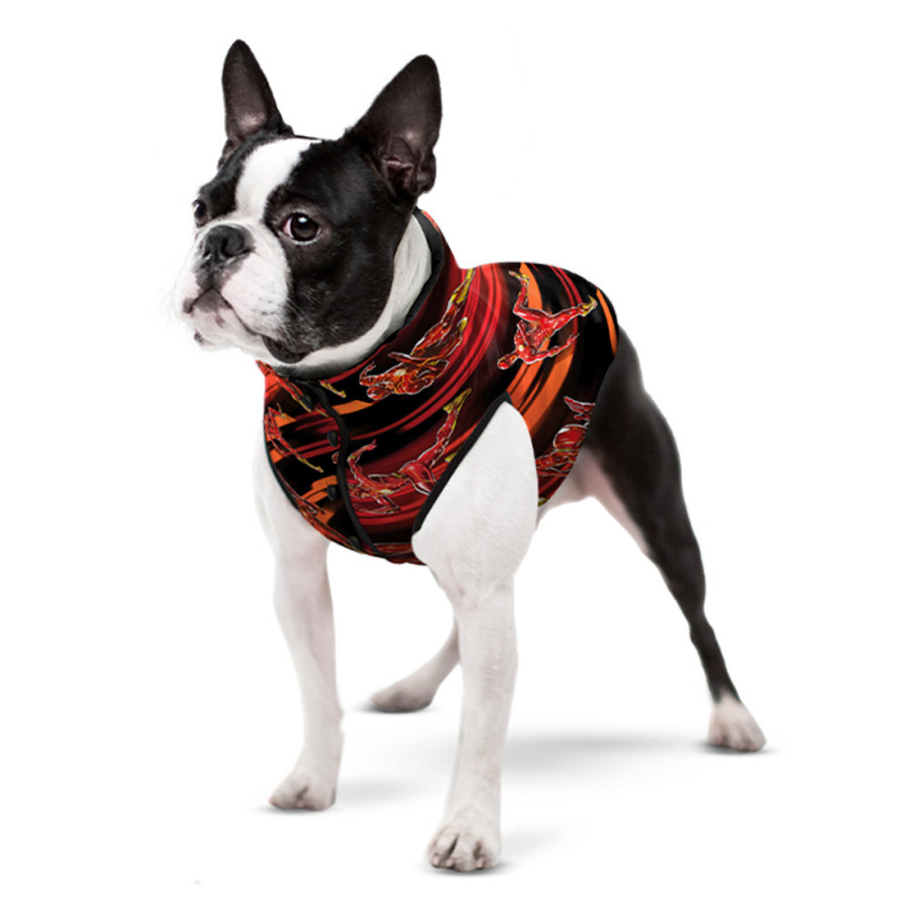 Главная особенность — двусторонний дизайн. С одной стороны — яркий принт «Скорость Флэша», который подчеркнёт характер вашего питомца и добавит динамики в его образ. С другой — более сдержанный вариант, подходящий для повседневных прогулок.