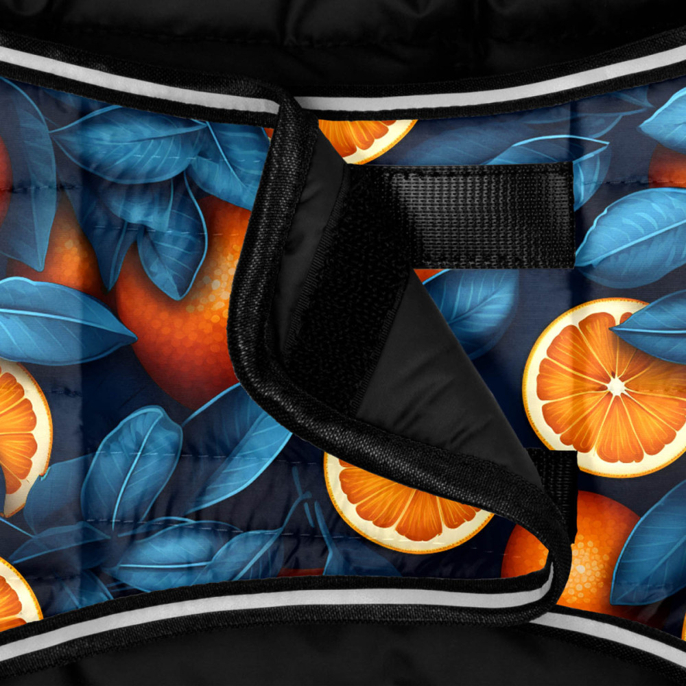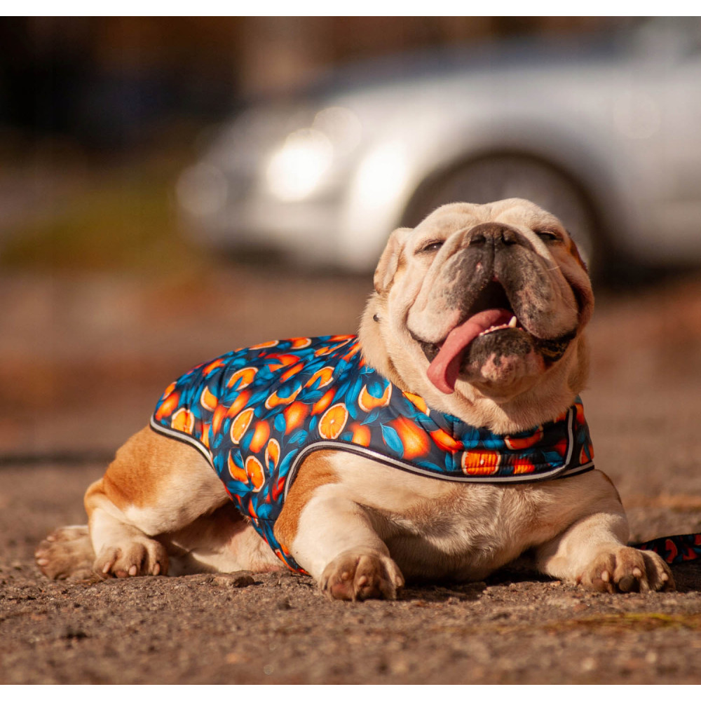 Благодаря застёжке-липучке накидка быстро надевается и удобно сидит на собаке. Принт с апельсинами поднимает настрій і робит вашого улюбленця центром уваги.