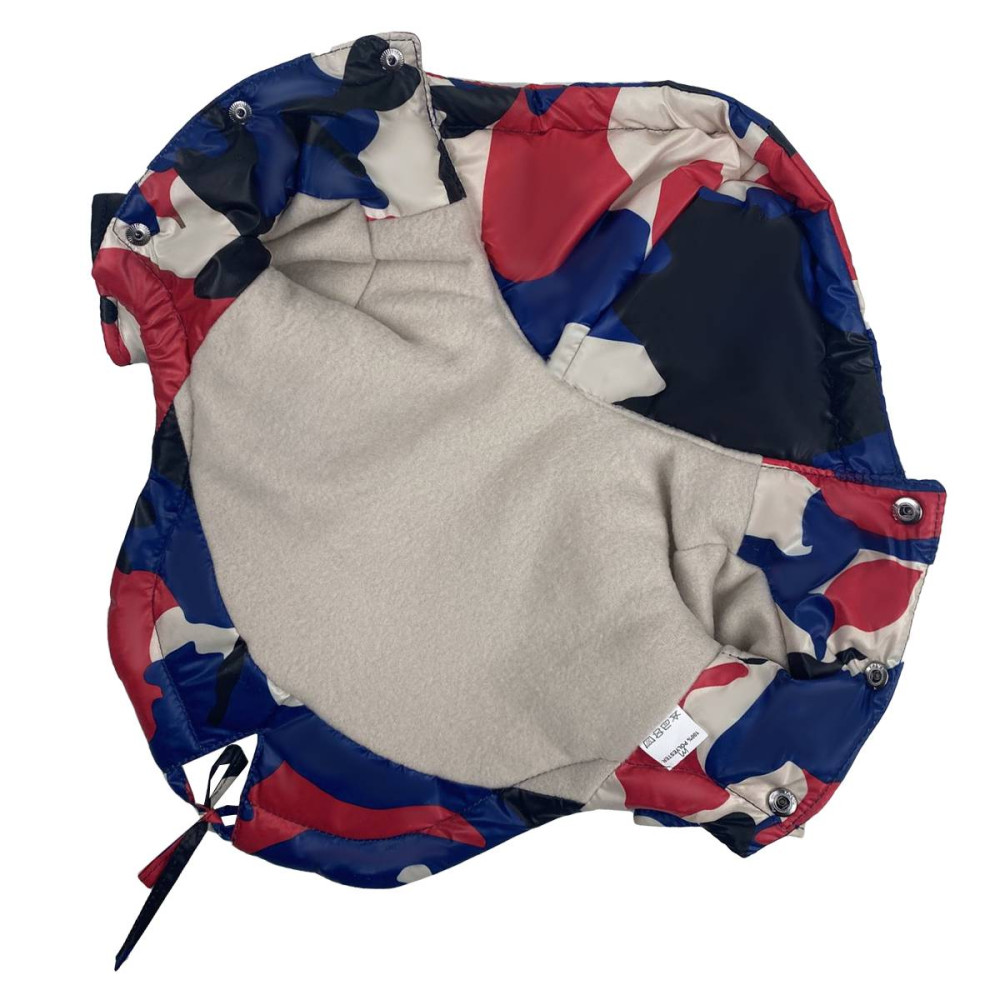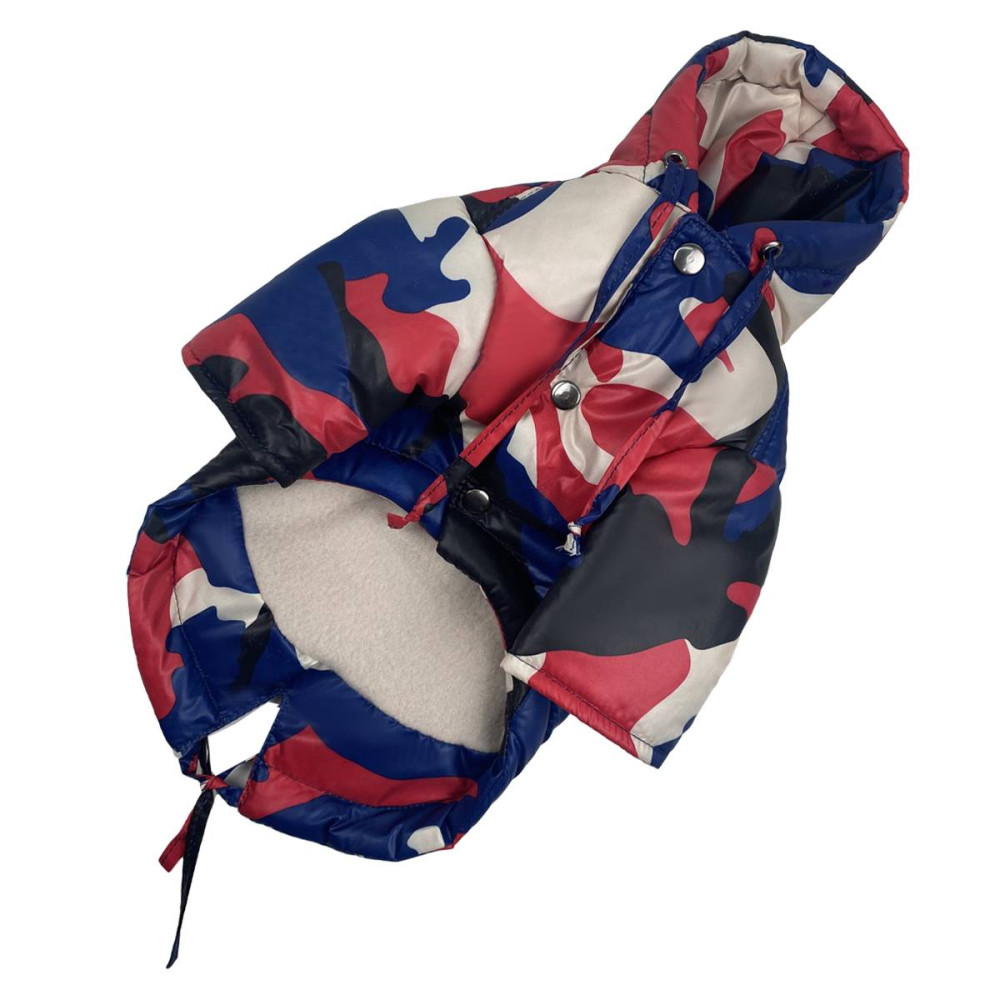 Курточка-парка для собак камуфляж красный KP-10 - отличный выбор для защиты вашего питомца от холода и ветра во время прогулок зимой или весной. Курткочка выполненена в камуфляжном четырёхцветном стиле, что позволяет вашей собаке выглядеть модно и защищенно одновременно.
