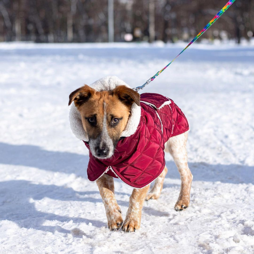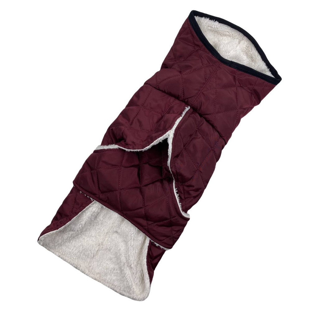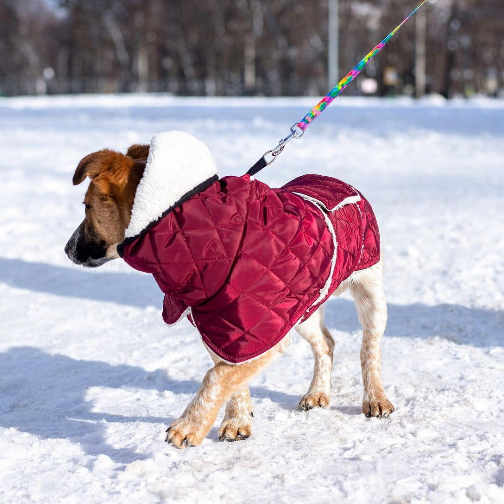 Зимний жилет для собак Dogs Bomba GL-2 выполнен из плотной водоотталкивающей плащевой ткани и утеплен слоем синтепона. Модель бордового цвета имеет мягкую подкладку из плюшевого меха, что делает ее идеальным выбором для морозных прогулок при температуре до -20°C. Эта зимняя одежда для собак застегивается на спине с помощью широкой липучки, позволяющей легко регулировать объем под параметры животного.