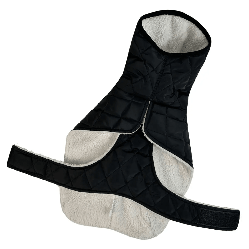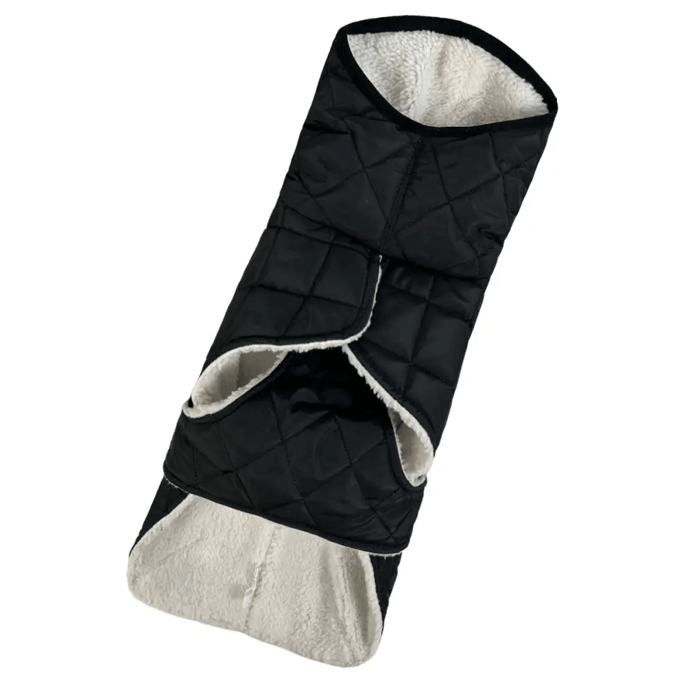 Жилет рассчитан на морозы до -20°C благодаря синтепону и плюшевой подкладке. Для большинства пород дополнительная одежда не требуется, но для очень мерзлявых собак можно использовать тонкий трикотажный слой.