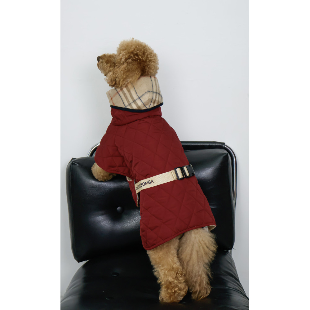 Жилет для собак стёганый двусторонний марсала G-113 — универсальный жилет для собак, сочетающий практичность и стиль. С одной стороны он выполнен из влагозащитной плащёвки, а с другой — из мягкой клетчатой фланели, что позволяет менять образ питомца в зависимости от настроения.
