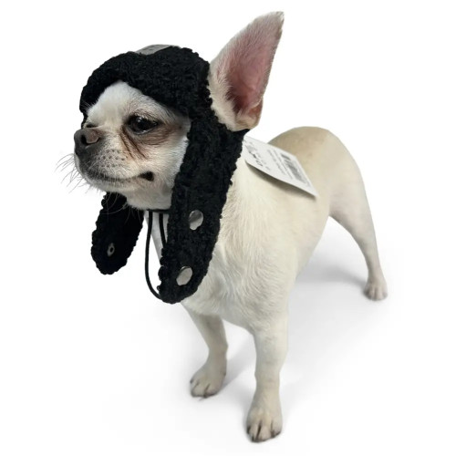 Шапка для собак Авіатор тедді чорного кольору S-82 – стильний та практичний зимовий аксесуар. Вона забезпечує надійний захист від холоду та вітру, закриваючи голову й вуха собаки. Лаконічний чорний відтінок робить аксесуар універсальним для собак будь-якого забарвлення.