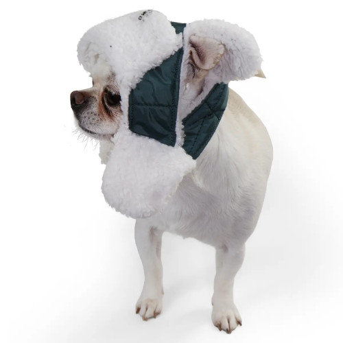 Шапка з вушками для собак смарагдового кольору S-96 – теплий та модний аксесуар для зимових прогулянок. Стьобаний верх надійно захищає від холоду та вітру, а м’який хутровий підклад створює максимальний комфорт для вашого улюбленця.