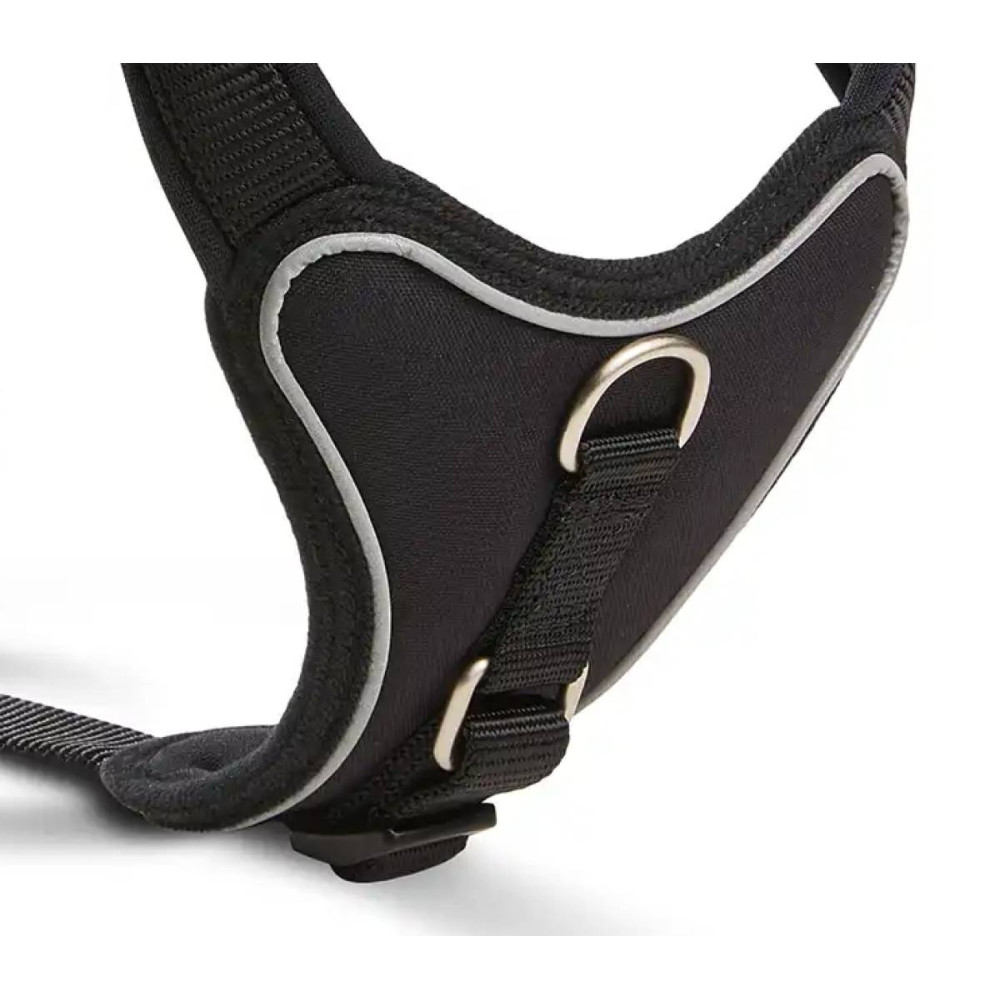 Головна особливість цієї моделі — поєднання міцності та м'якості. Зовнішній нейлоновий шар гарантує довговічність, а внутрішня неопренова підкладка забезпечує винятковий комфорт. Світловідбиваючі елементи роблять прогулянки безпечними у темний час доби, а додаткове кільце на грудях дає змогу краще контролювати собаку під час тренувань.