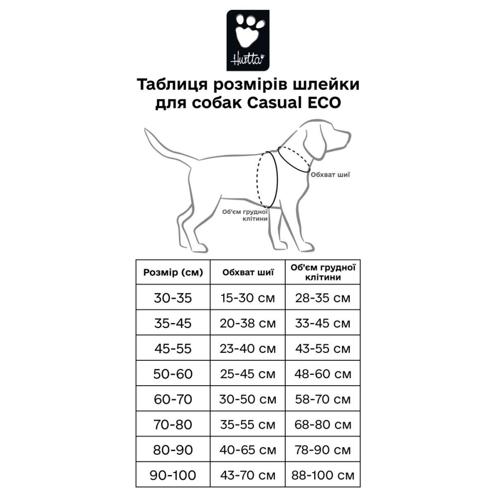 | Розмір (см) | Обхват шиї | Об'єм грудної клітини |