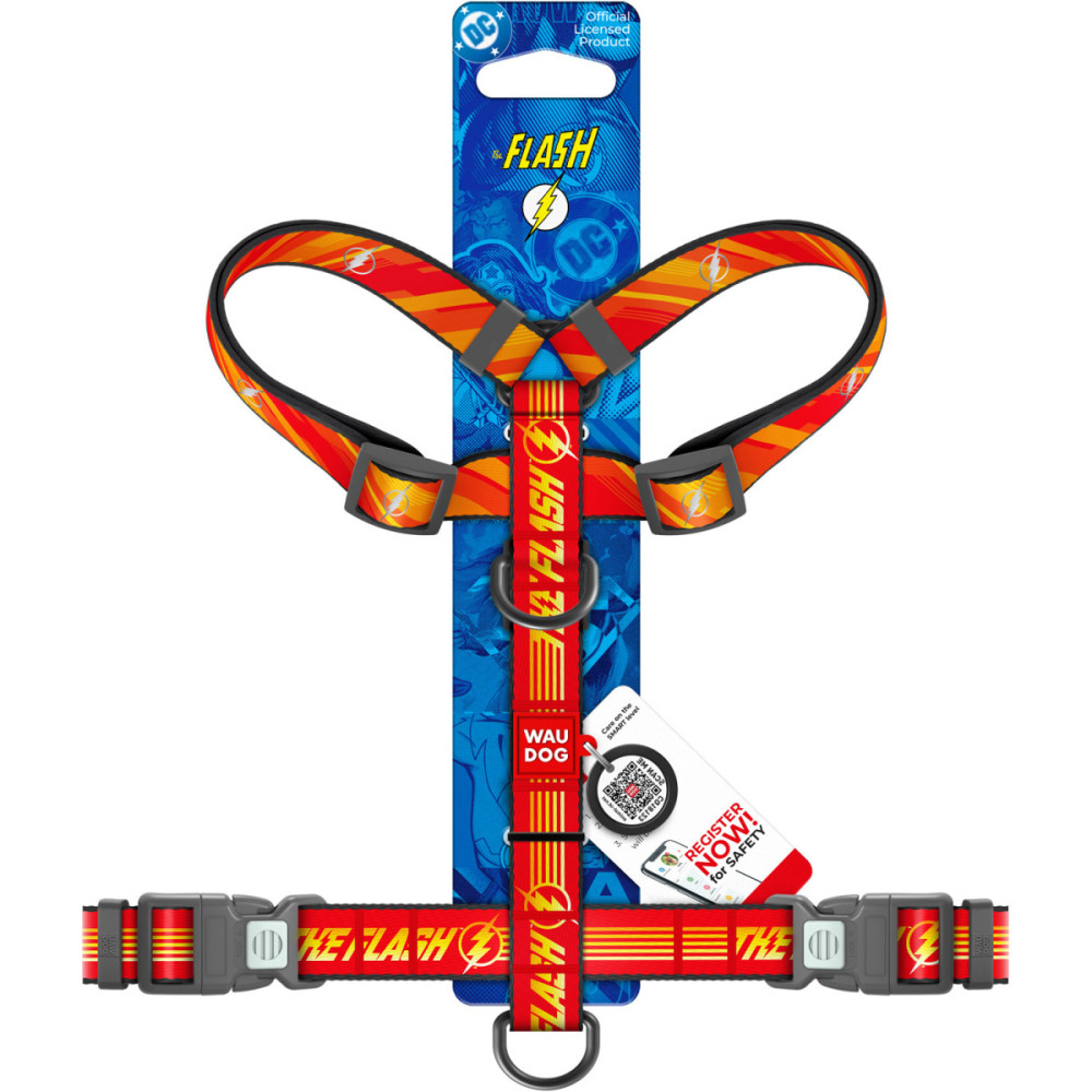 Шлея для собак WAUDOG Nylon у супергеройському дизайні "Флеш Лого" — це швидкість, стиль та безпека в одному аксесуарі. Головна фішка цієї моделі — світловідбивний ефект. Легендарна блискавка супергероя яскраво відбиває світло фар та ліхтарів, роблячи вашого улюбленця помітним у темний час доби. Ця шлея для собак ідеально підходить для фанатів всесвіту DC та дбайливих власників.