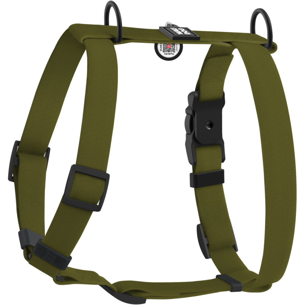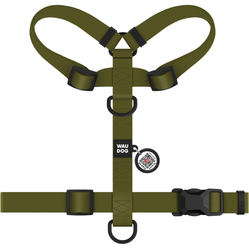 Функціональна шлея серії WAUDOG Magnet у практичному кольорі "Хакі" створена для активних прогулянок та пригод. Амуніція виготовлена з інноваційного матеріалу COLLARTEX — він приємний на дотик, не ковзає в руках та повністю стійкий до води й бруду. Це робить шлею ідеальним вибором для використання в складних погодних умовах, особливо в парі з захисними дощовиками для собак.