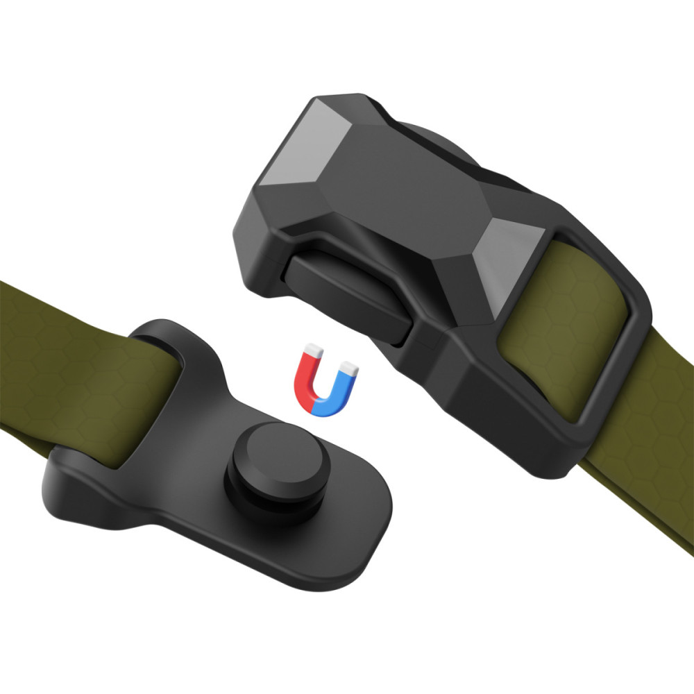 Інновація для комфорту: унікальний магнітний фастекс дозволяє одягнути та зняти амуніцію за одну секунду, навіть однією рукою. Механізм замикається автоматично. Щоб підкреслити "тактичний" стиль вашого улюбленця, рекомендуємо підібрати водостійкі повідці для собак серії Waterproof у тон.