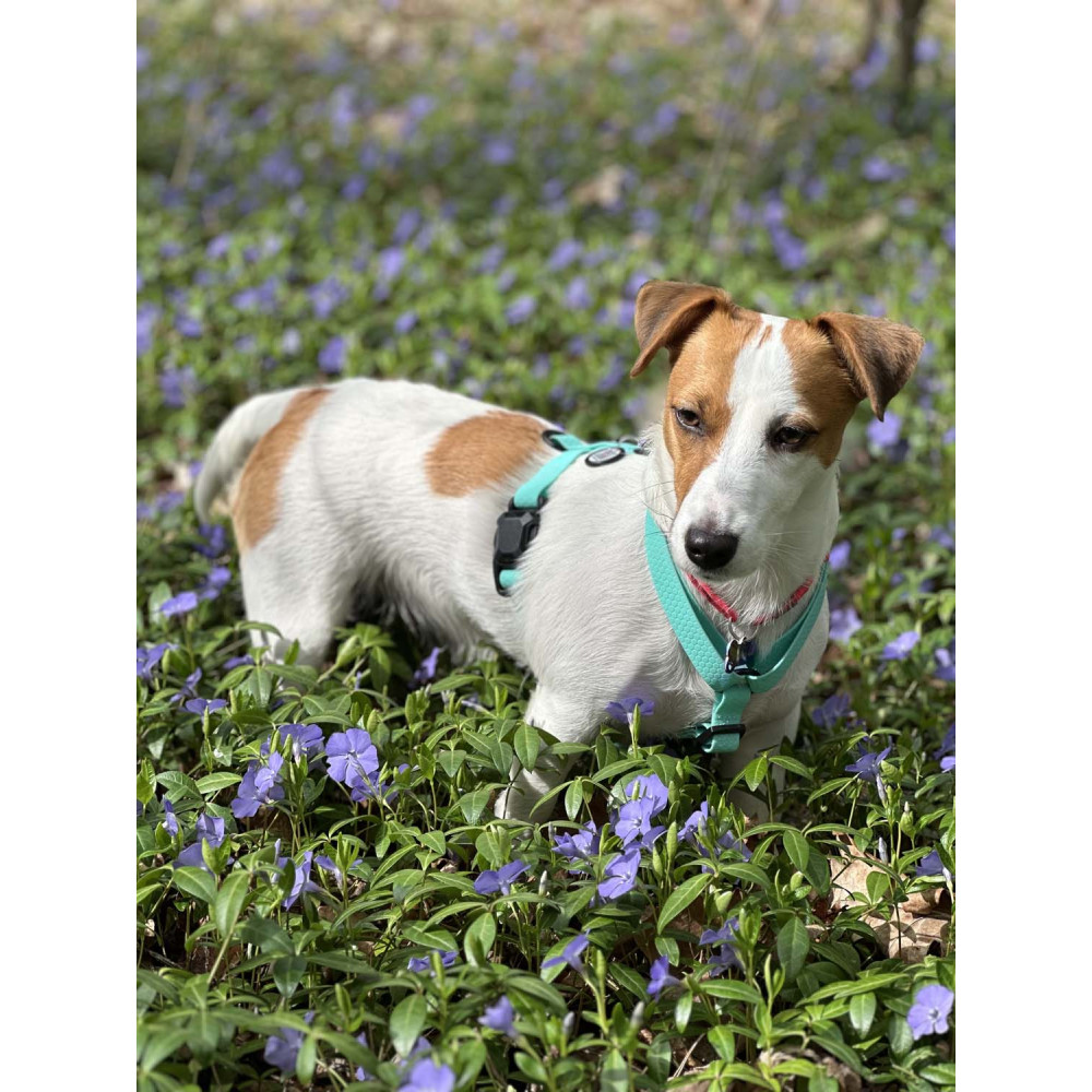 Миттєве вдягання: завдяки унікальному магнітному фастексу, процес зборів на прогулянку займає лічені секунди. Замок замикається самостійно при наближенні частин, що дозволяє зафіксувати амуніцію однією рукою. Щоб створити ідеальний водостійкий сет, рекомендуємо підібрати повідці для собак серії Waterproof у такому ж м'ятному відтінку.